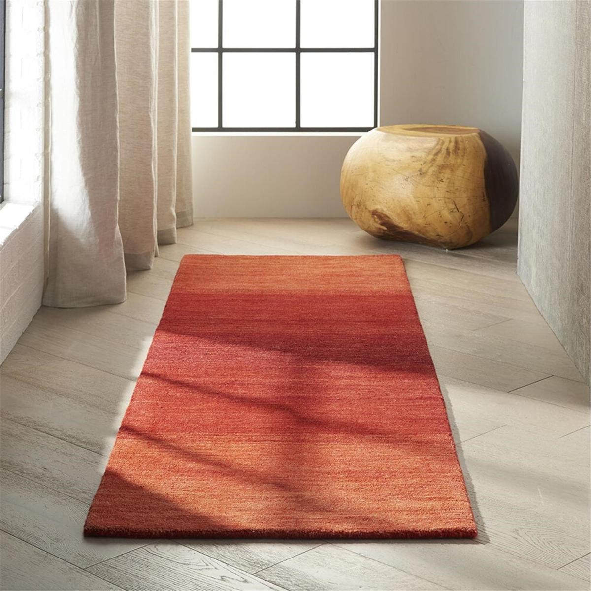Update any room with this gorgeous Linear glow rug from Calvin Klein. Made from hand loomed wool pile, not only does this item look great but feels luxuriously soft too. Hand dyed yarns create an expansive strained effect on the rug, with beautiful red watercolours washing across its surface. Perfect for adding colour, this rug offers striking pattern to any interior. There are more wonderfully designed Calvin Klein rugs available.