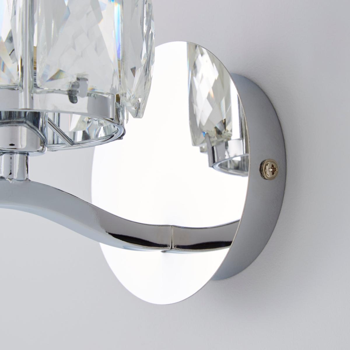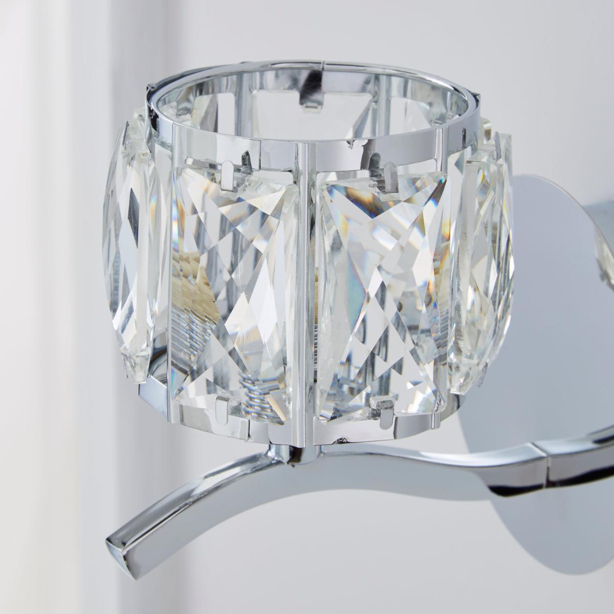 Introducing The Kleio Wall Light Twin Pack. This stunning wall light features a curved arm structure with a beautiful chrome finish. Complete with a glass jewel beads shade, which adds a luxurious touch to this design. These twin dimmable wall lights are perfect for adding a glamorous feel to your room.