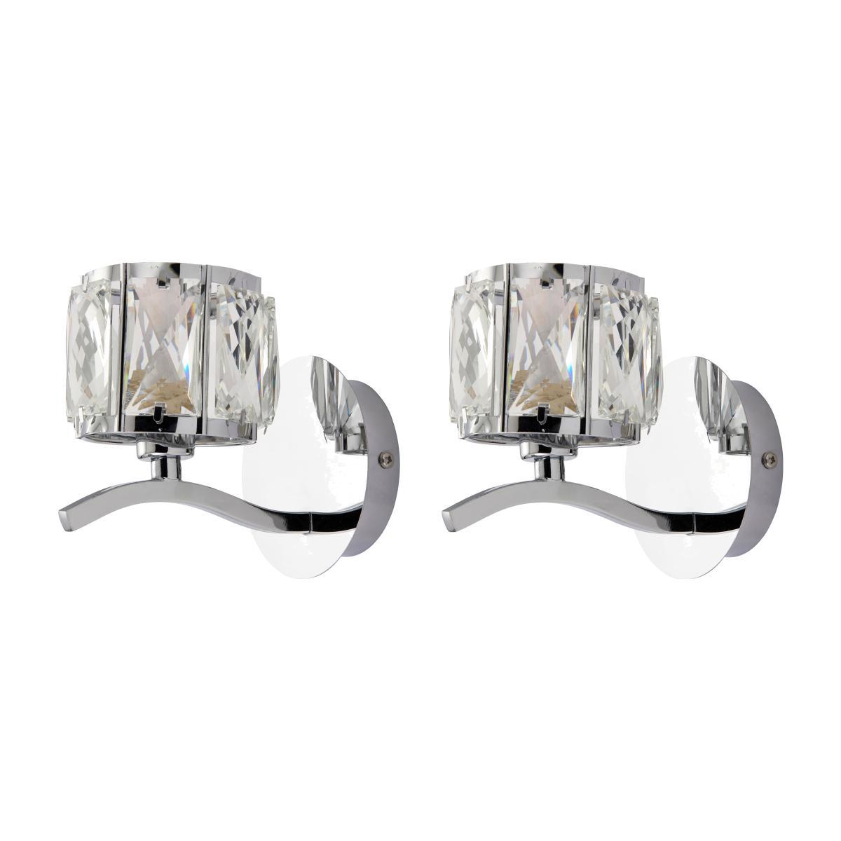 Kleio Glass Chrome Wall Light Twin Pack Chrome