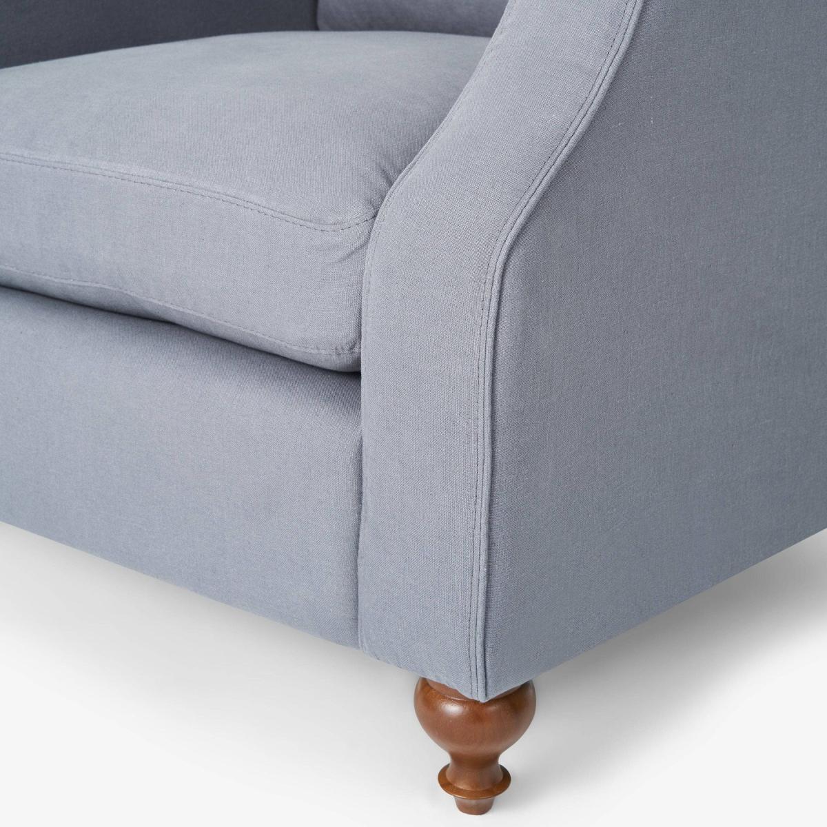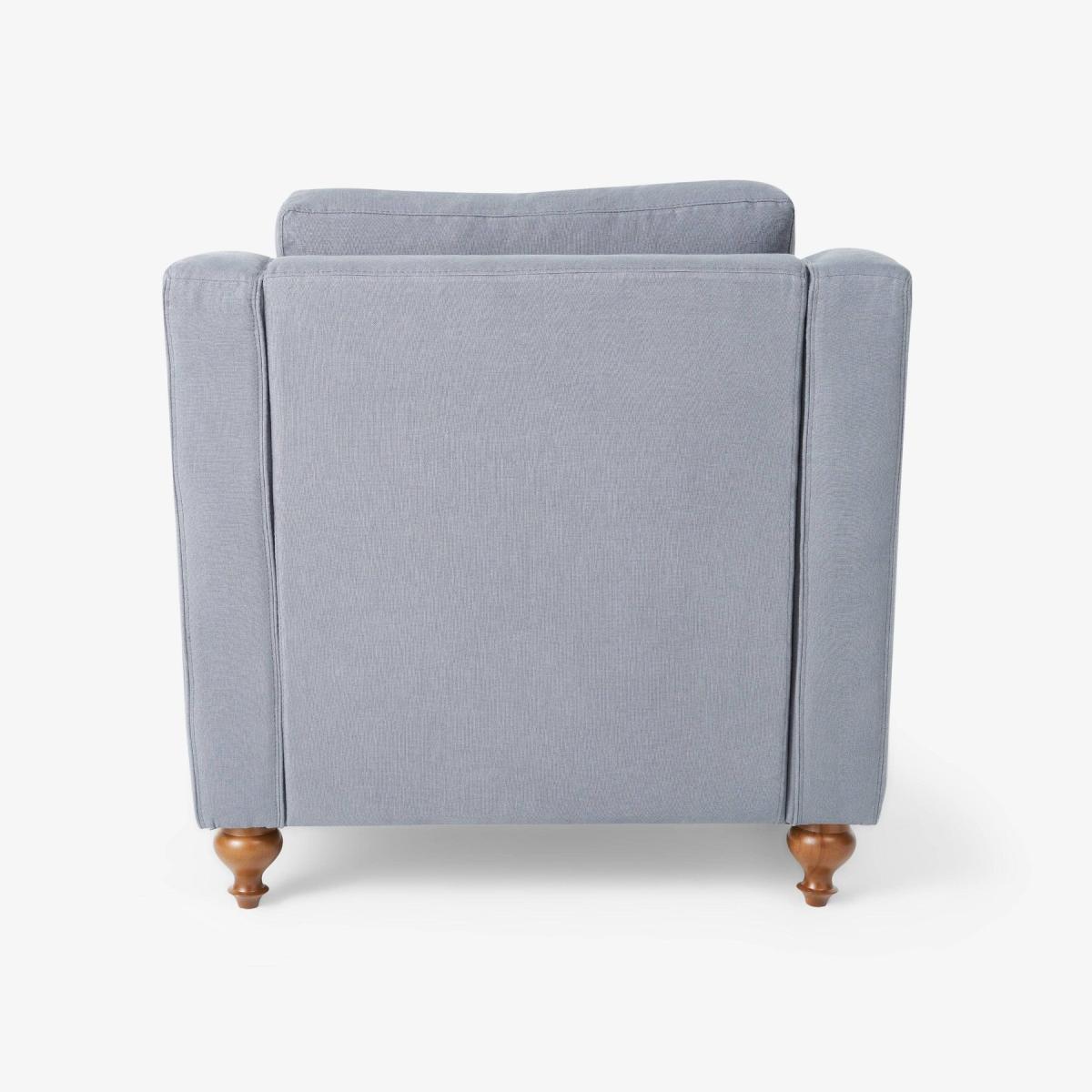 Enjoy the refined seating of our generous Klimt armchair. It has timeless appeal and gentle elegance, inspired by mid-century design and upholstered in a quality 100% grey linen—the ideal marriage of spacious seating space and comfort. Its supportive frame is complemented by deep-seated comfort and is handcrafted from hornbeam wood. Klimt has foam filling, soft back cushions, and seat cushions to make guests or the entire family feel comfortable. This classic seat has a detachable back and seat cushion, as well as washable seat cushion covers for any spills or accidents in the home. Perfect for those who love an understated style, this armchair exudes quiet luxury and will look great in your living room or home office. It has elegant wooden legs for a classic appearance. Complies with UK safety regulations: certified flame retardant testing certificate.
