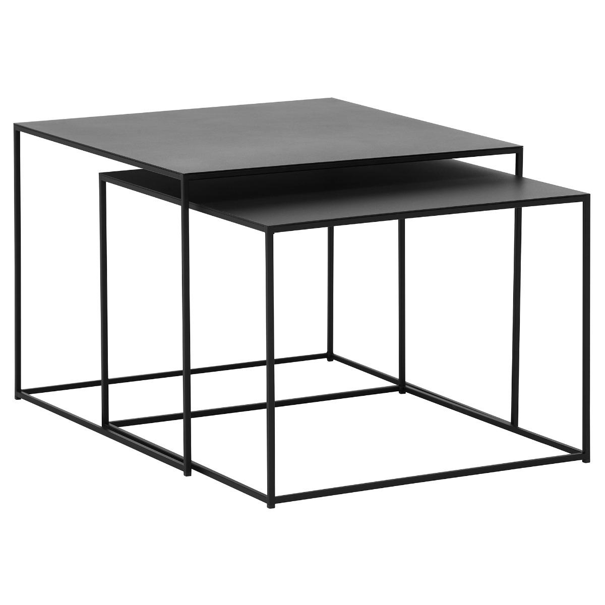 Design. The Kline Black Metal Nest of 2 Tables are the perfect way to add industrial and modern style to your living space. Coming in two large sizes, each table can be used as regular side tables or tucked away in the corner for extra surface space with guests. Made from steel with a black powder coating finish, longevity is ensured with each piece. Style with other tables from the Kline range for a consistent look.