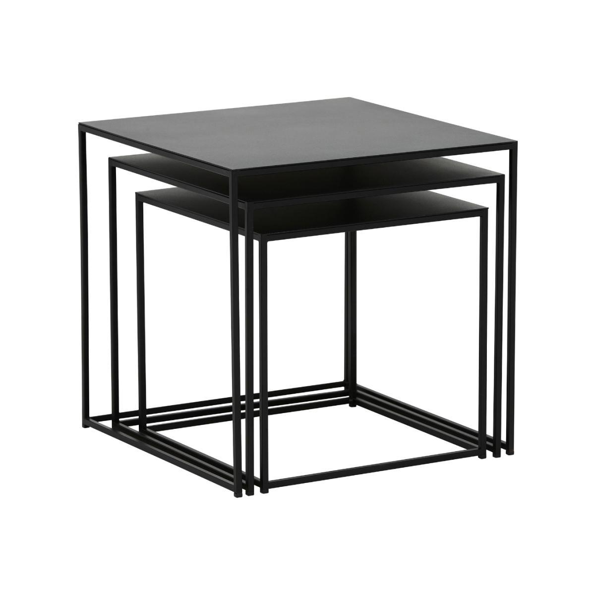 Design. The Kline Black Metal Nest of 3 Tables are functional and stylish, ready to be placed however you like in your home! Each table is made from black powder coated steel, ensuring durability with a modern finish. The Kline range is designed with thin metal legs and a smooth finish, perfect for contemporary or industrial décor.