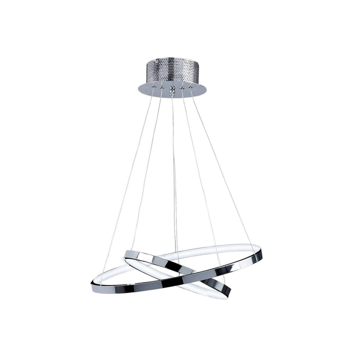 An impressive LED ceiling pendant from which 3 LED circles hang. Finished in chrome and with an adjustable drop of up to 1250mm. Low maintenance costs and energy efficient. Also available in a smaller 2 circle version