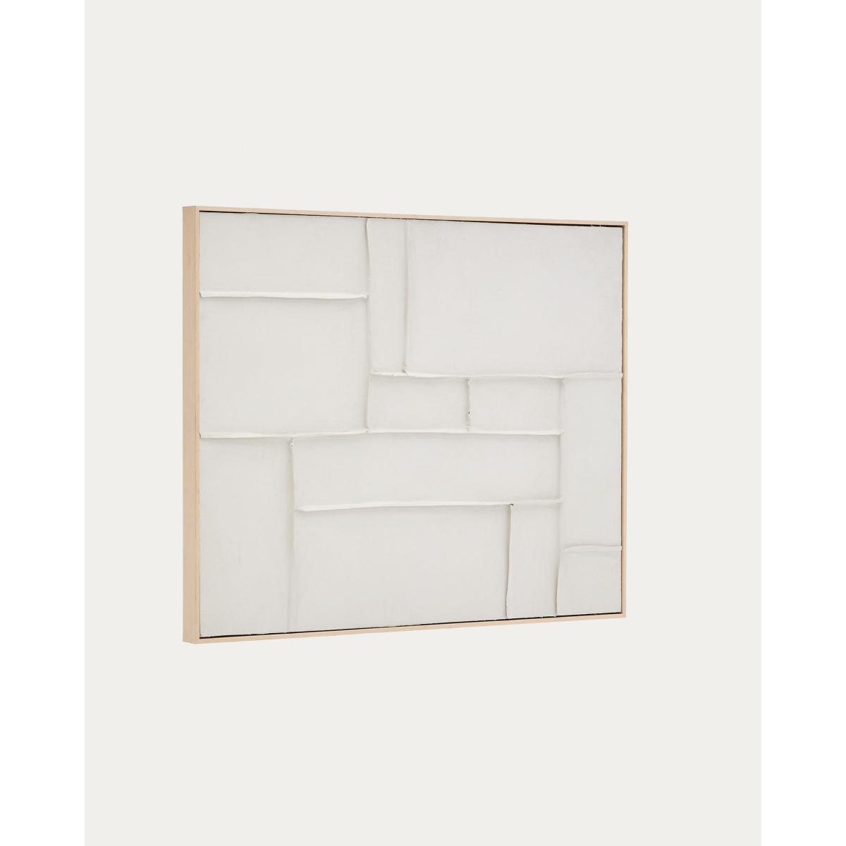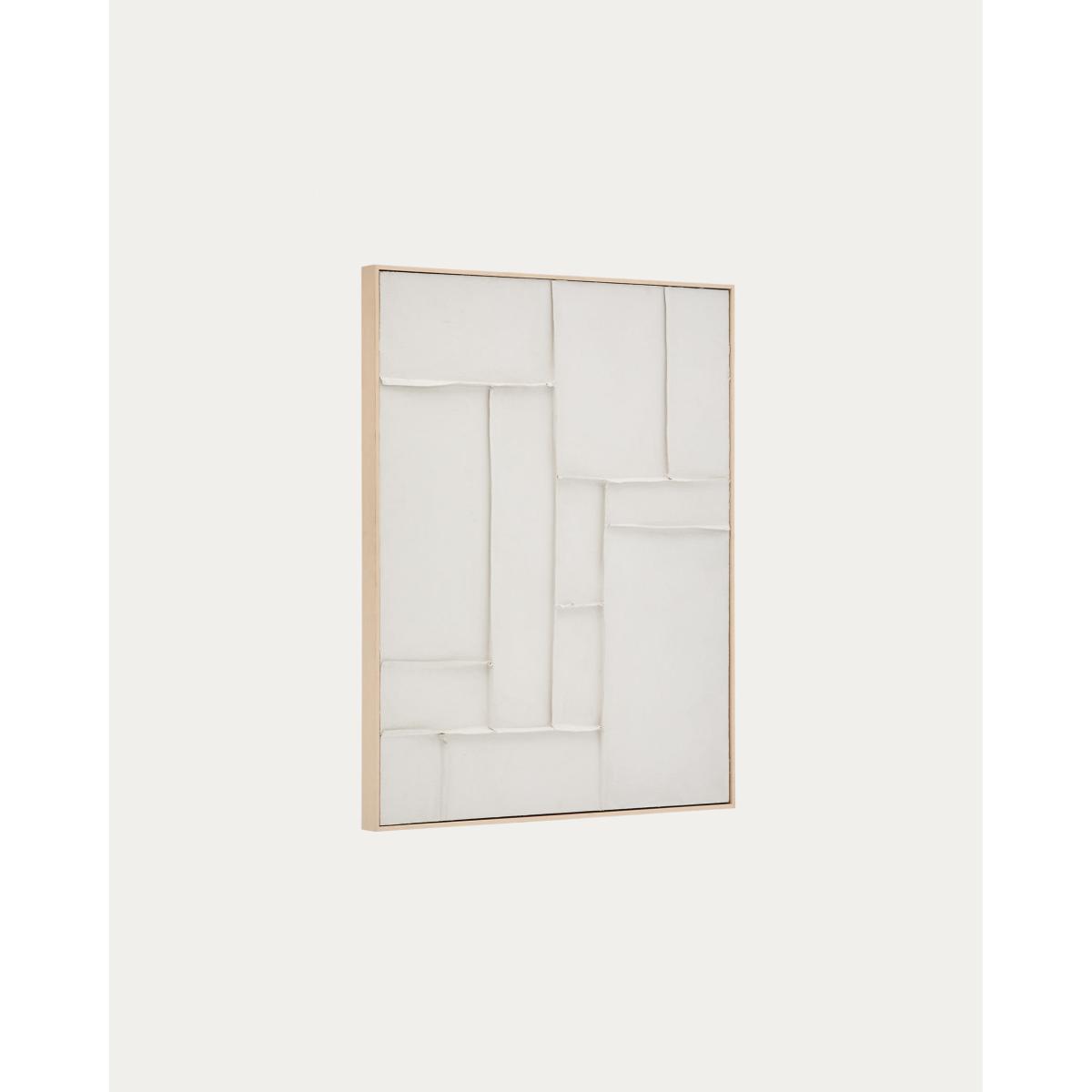 I love this Klis white linen picture for its clean, modern aesthetic and subtle geometric design, which makes it highly versatile for contemporary interiors. It works particularly well in minimalist or Scandinavian-inspired spaces, where its understated elegance can add depth without overwhelming the decor. Practical styling tips include hanging it above a neutral sofa or sideboard to create a focal point, or pairing it with textured accessories like woven throws or ceramics to soften its crisp lines. Its size (80 x 100 cm) also makes it ideal for filling mid-sized walls, offering visual interest without dominating the room. Overall, this piece provides a sophisticated, understated statement that can seamlessly elevate various interiors.
