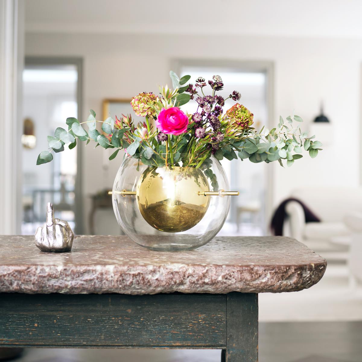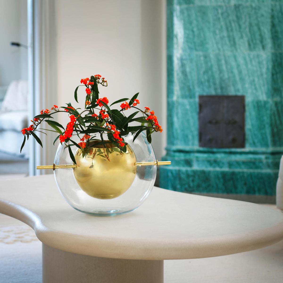 I love this glass vase with its brass accent for adding a touch of modern elegance. Its round shape and metallic finish make it versatile, working well in contemporary, minimalist, or even eclectic interiors. It’s great for displaying fresh or dried flowers, but it also makes a striking standalone decorative piece. When styling, consider pairing it with muted tones or contrasting textures to make the brass pop, and for practical placement, it works well on console tables, shelves, or coffee tables. Keep in mind, its shape and finish lend themselves to a sleek, curated look that can elevate a variety of room styles.