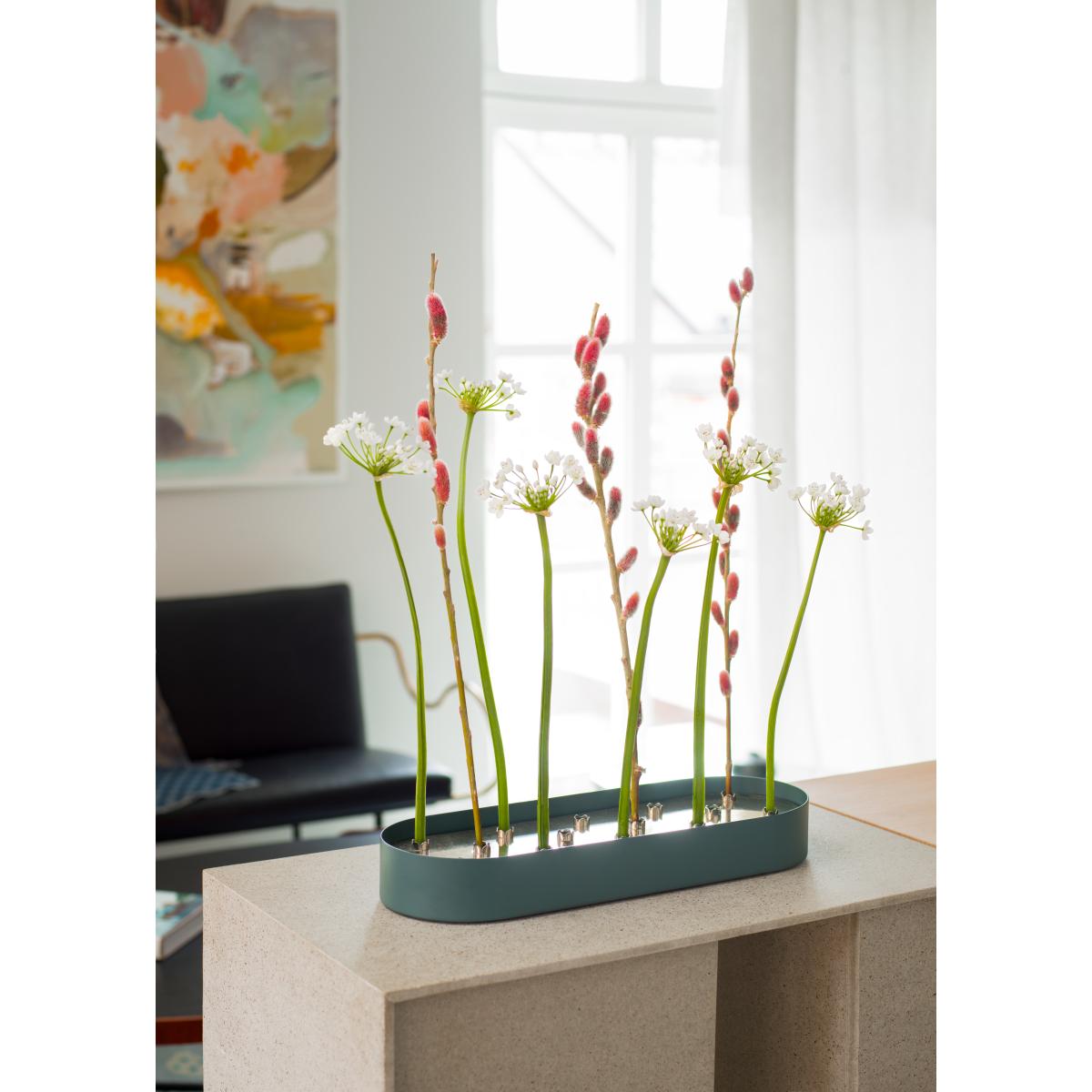 Jubel multifunctional vase 45x14 cm from Swedish Klong has a unique design that enables a simple but beautiful flower arrangement. The designer behind the vase is Hanna Wendelbo who is passionate for flowers and design. The clever use of a reversible insert, allows you to switch up the look of the vase. Let your flowers adorn the window sill or dining room table in an innovative and charming way.