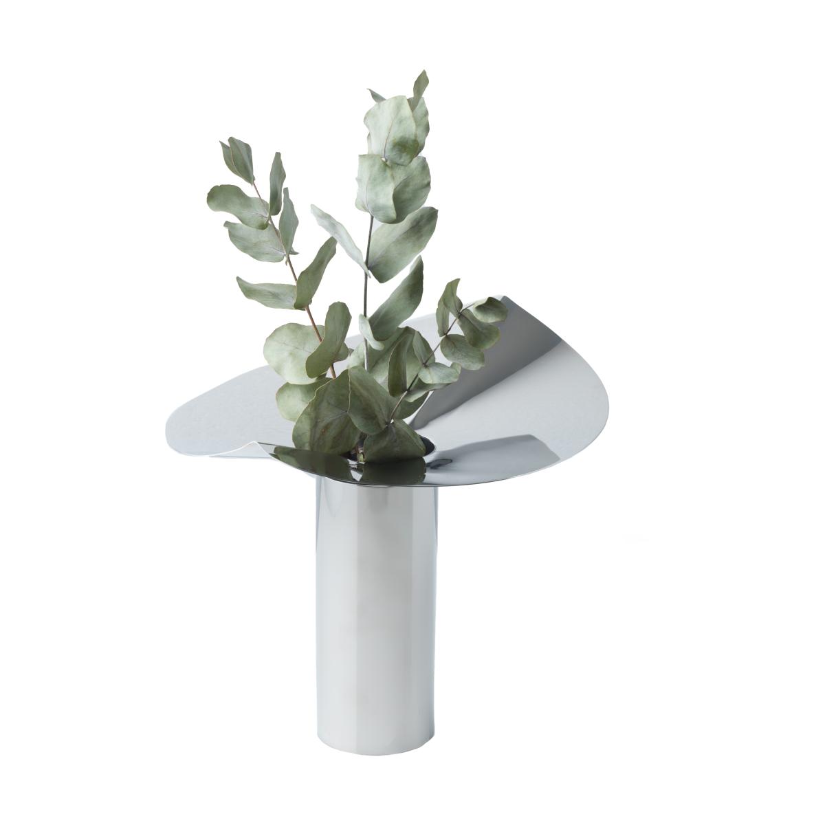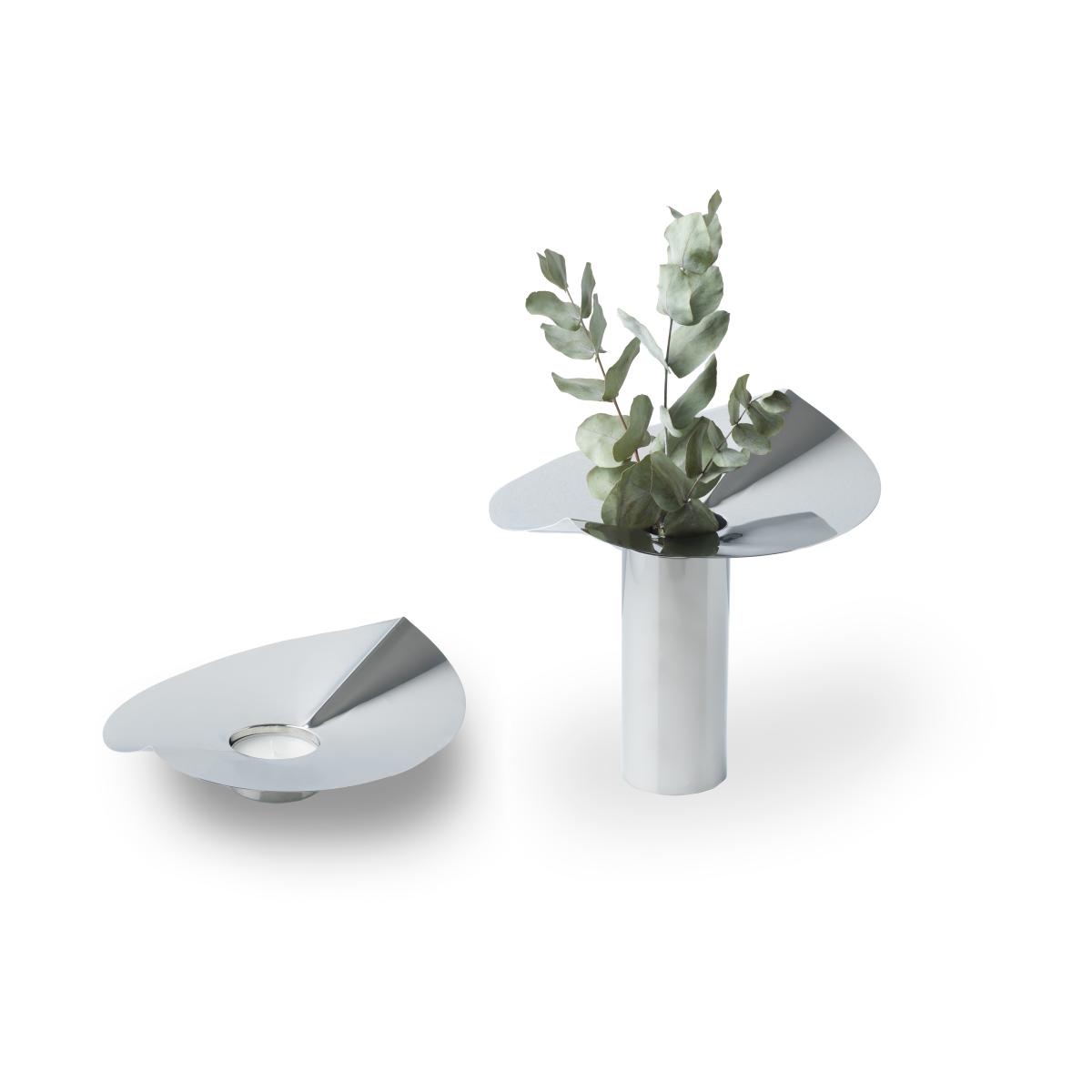 "The Löv vase-candle holder from Klong is an elegant interior detail in stainless steel that combines sleek design with function. This versatile vase and candle holder can be used in multiple ways – as a vase for cut flowers and branches, or as a candle holder for tealights. Löv consists of two parts that can be used together or separately, making it easy to change the appearance according to season or mood. Whether you place a green branch in the vase or let a tealight illuminate the room, the shiny surface embraces and reflects both the light and the colours of nature in an atmospheric way. A perfect detail for those who want to create a vibrant and ever-changing home with timeless design. Löv vase-candle holder is also an appreciated gift for someone who loves Scandinavian design and smart functionality in one."