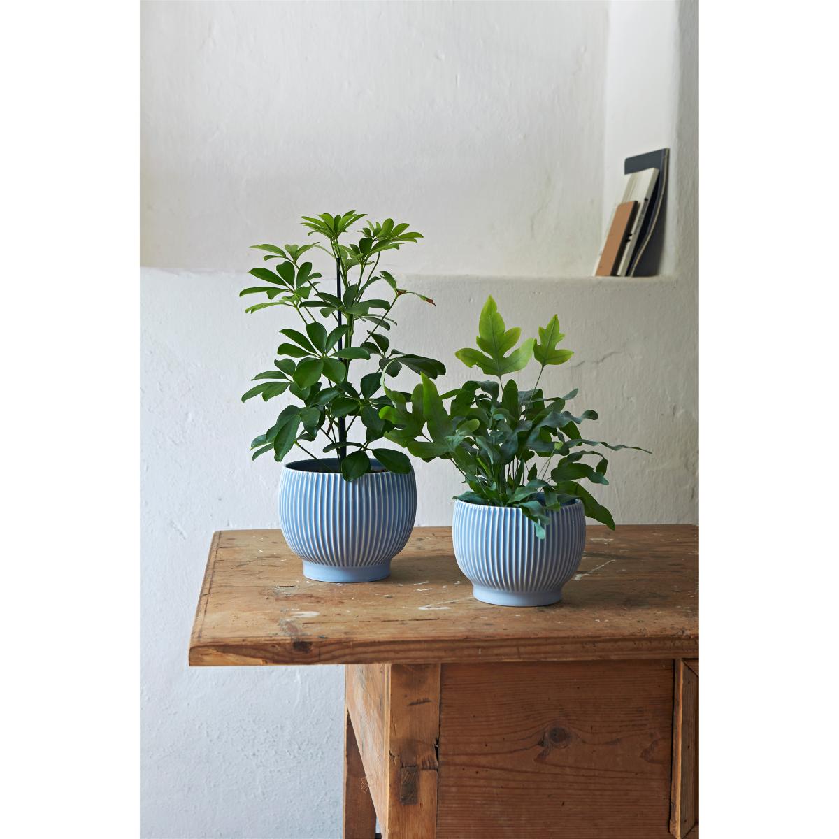 This flower pot is a lovely choice for adding a subtle pop of colour to both neutral and pastel interiors. The lavender blue hue is versatile, working well in gardens, sunrooms, or indoor spaces like kitchens and living rooms with light or pastel colour schemes. Its fluted design adds texture without overpowering the surrounding decor, making it ideal for contemporary or Scandinavian-inspired aesthetics. Practical styling tips include pairing it with already existing ceramics or plants in similar muted tones to create a cohesive look, or using it as a standalone statement piece on a windowsill or shelf. Its size is perfect for small to medium plants, making it functional while elevating your plant display.