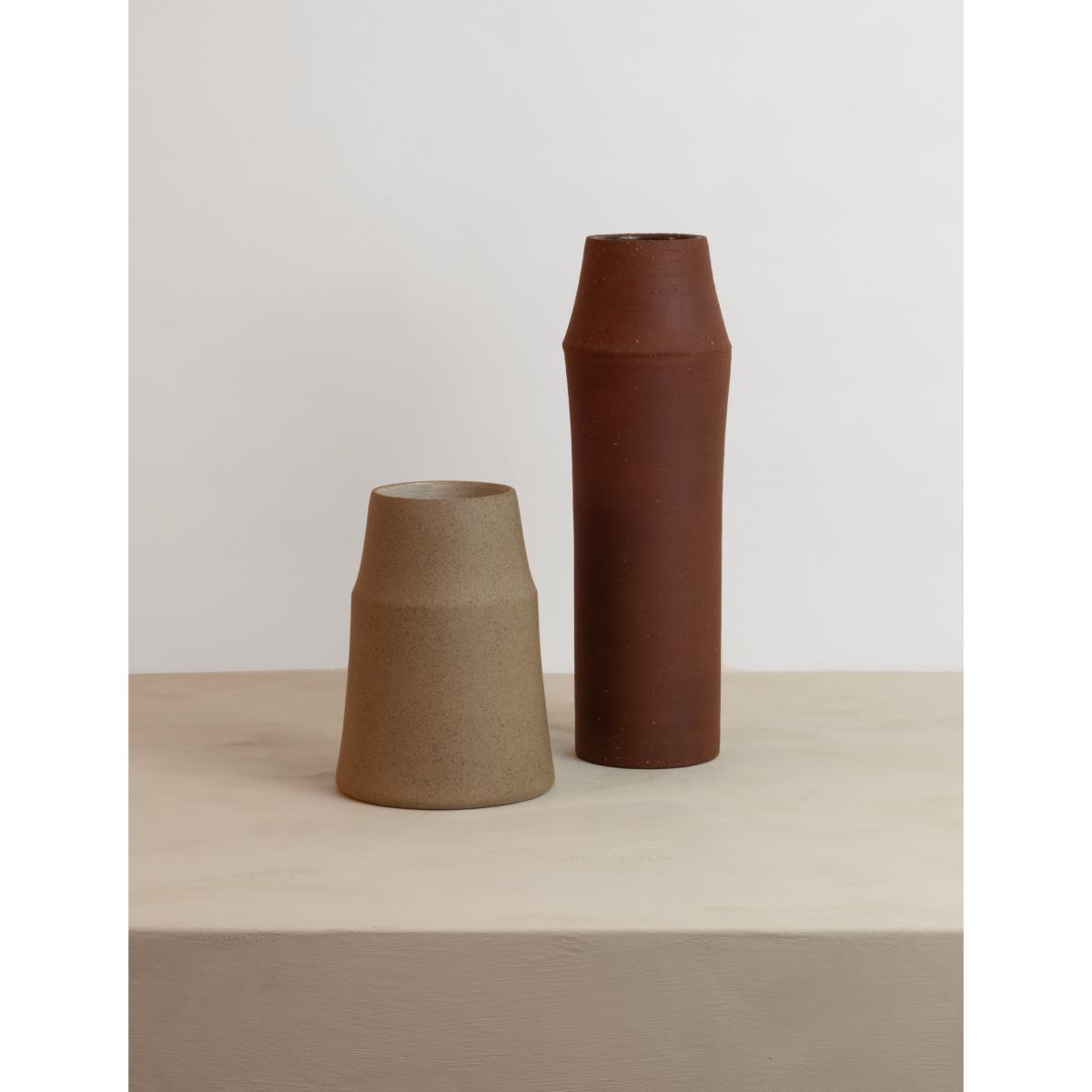 I love this clay vase for its understated, natural aesthetic, making it a versatile piece that can complement a variety of interiors. Its warm sand tone adds subtle warmth to neutral palettes and pairs beautifully with both modern and rustic settings. It's particularly effective when styled with dried grasses or simple stems for a minimalist look, or even left empty as a sculptural accent. Practical styling tips include grouping it with other textured ceramics or placing it on a wooden or neutral-toned surface to enhance its organic feel. Its modest size and clean shape make it ideal for side tables, shelves, or mantelpieces, adding a touch of understated elegance without overwhelming the space.