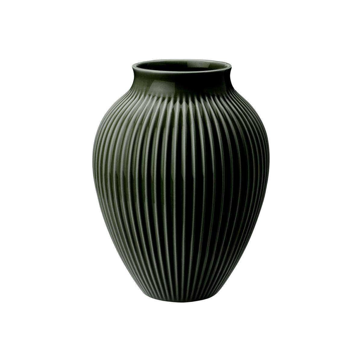Knabstrup Keramik Knabstrup vase ribbed 20 cm Dark green