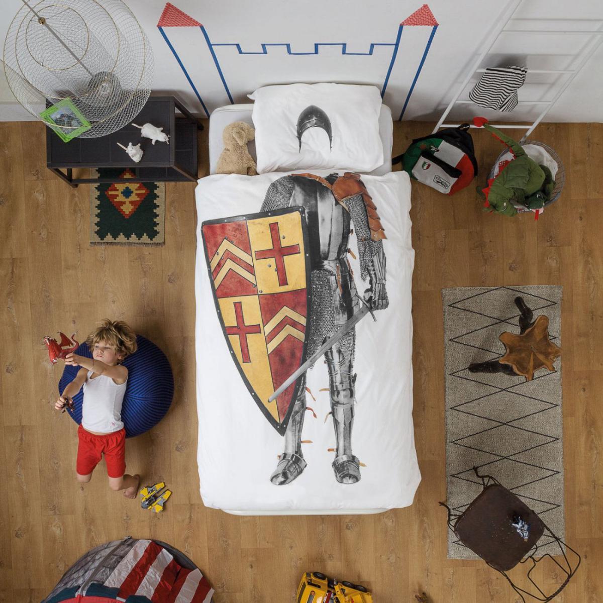 This knight bedlinen set is a fun and playful addition to any child's bedroom, especially if you're aiming for a casual, eclectic look. Its colourful design lends itself well to rooms inspired by modern, bohemian, or even industrial styles, where bold accents are welcome. When styling, consider pairing it with neutral or muted textiles to let the knight print pop, or add other adventurous decor elements like vintage toys or graphic wall art. Practical tips include keeping the surrounding bedding simple to avoid clashing patterns and using natural fibres for this set to ensure easy maintenance. Overall, it’s a great choice if you want to create a lively, imaginative sleeping space that sparks storytelling and fun.