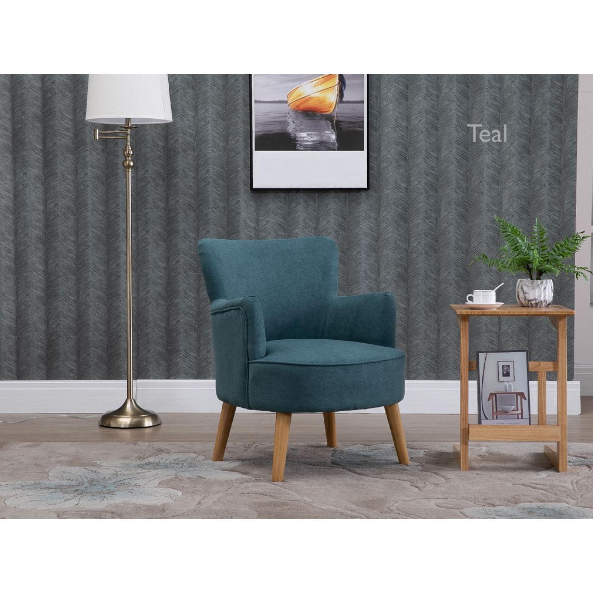 The teal Knightley armchair is a unique and stylish addition to your home. Featuring a classic design with a modern twist, the armchair features smooth teal fabric to add a touch of color to any space. A cosy, chic and comfortable armchair for your living room, bedroom or study. Small frame helps conserve floor space. Supported by sturdy and durable solid oak legs. Elegant finish, complete with stunning teal upholstery and a radiant light oak finish. Dense cushion for maximum comfort. Winged backrest that provides your back with comfort and support. Arms for a more supportive and comfortable seating experience. Also available in pearl grey, ochre, midnight blue, sunburst orange and violet upholstery.