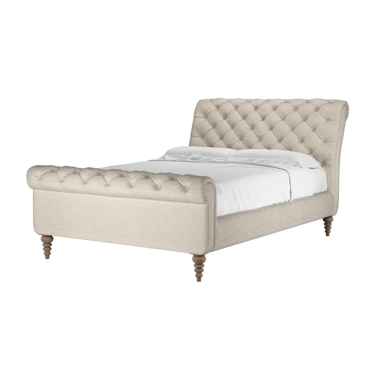Our Knightsbridge bed is an ultra-luxe design, with a high headboard, turned legs and deep tufting. It is available with or without a scrolled, tufted footboard and has a graceful, curved silhouette which echoes features of a classic Chesterfield design.
