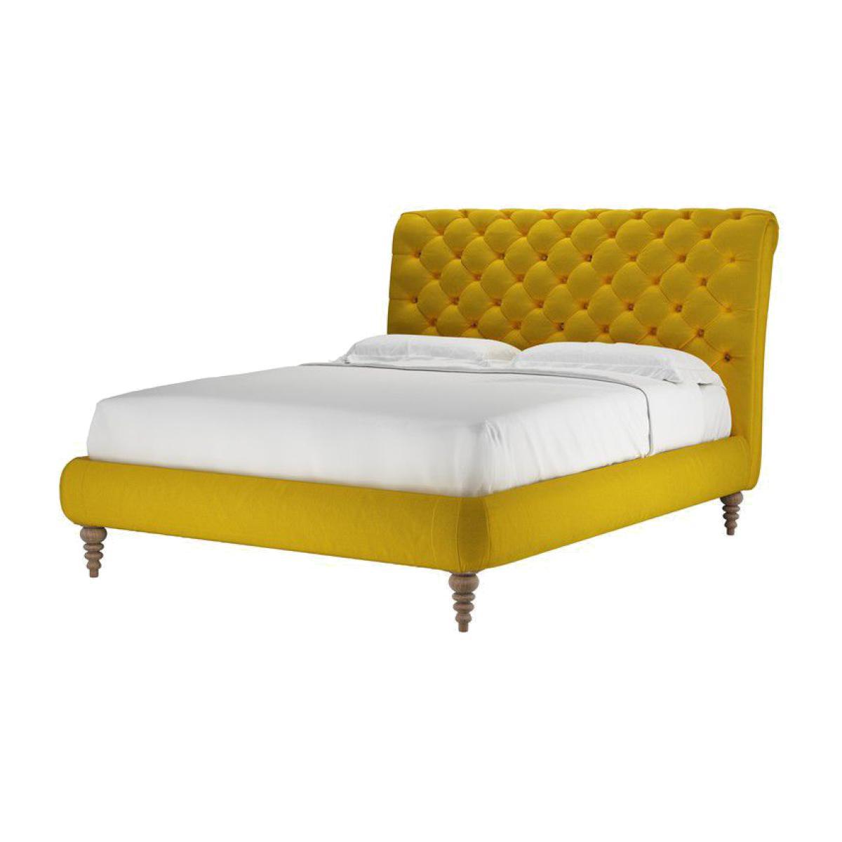 This bed frame is a fantastic option for adding a pop of colour and a touch of glamour to various interiors. Its vibrant Canary Cotton Velvet upholstery makes it ideal for contemporary or eclectic schemes, especially when paired with neutral bedding to let the colour really stand out. I love how the absence of a footboard creates a cleaner, more spacious look, making it perfect for smaller bedrooms or spaces where versatility is key. For styling, consider complementing it with plush cushions in contrasting textures or metallic accents for a chic vibe, and keep the bedside tables minimal so the headboard remains a focal point. Overall, it's a versatile piece that balances comfort and style with a modern edge.