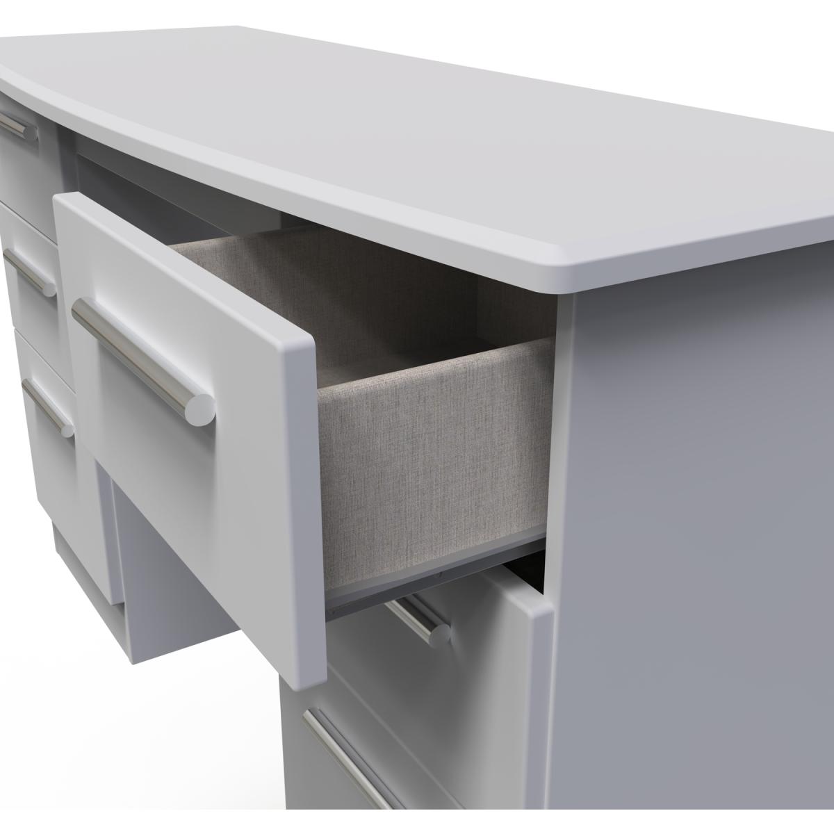 This practical 6 drawer kneehole deskvanity is perfect for any bedroom or office. A matching stool and mirror (in 2 sizes) are also available. Constructed from sturdy materials, this stunning range has been designed with today lifestyle in mind. With its clean lines and seductive colour palette, it will add sophistication and contemporary style to your home. All our furniture is made in the United Kingdom, to the highest quality. It is delivered direct to your location of choice by one of our two man delivery teams, and come full assembled (although legs may be removed to prevent damage in transit).