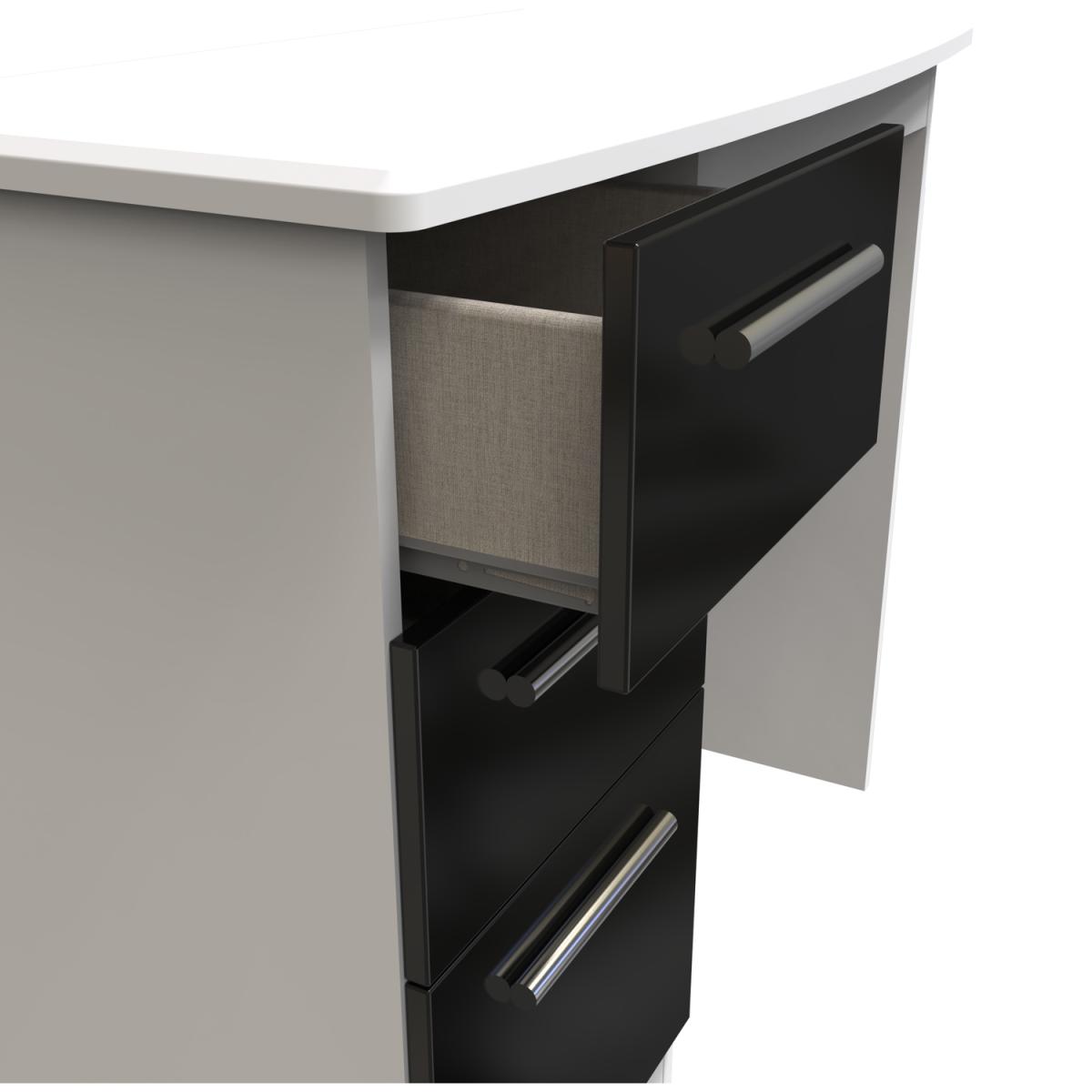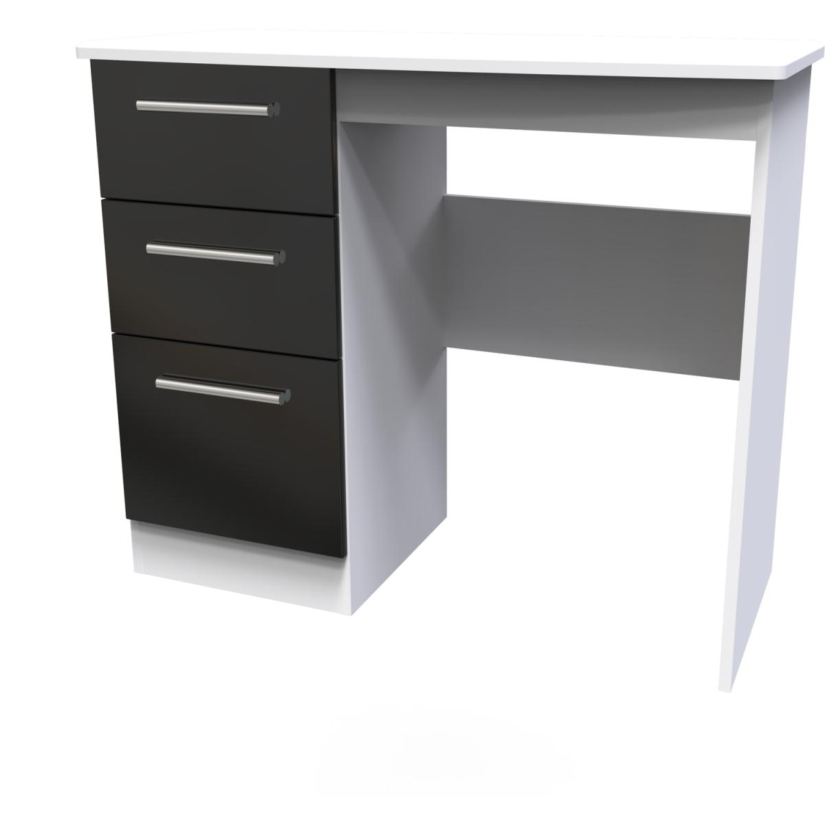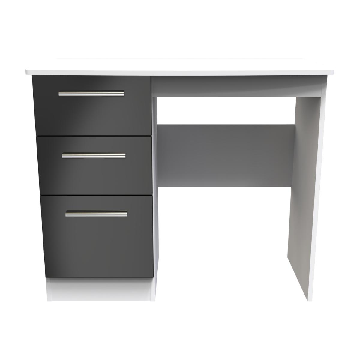 This practical 3 drawer narrow deskvanity is perfect for any bedroom or office. A matching stool and mirror (in 2 sizes) are also available. Constructed from sturdy materials, this stunning range has been designed with today lifestyle in mind. With its clean lines and seductive colour palette, it will add sophistication and contemporary style to your home. All our furniture is made in the United Kingdom, to the highest quality. It is delivered direct to your location of choice by one of our two man delivery teams, and come full assembled (although legs may be removed to prevent damage in transit).