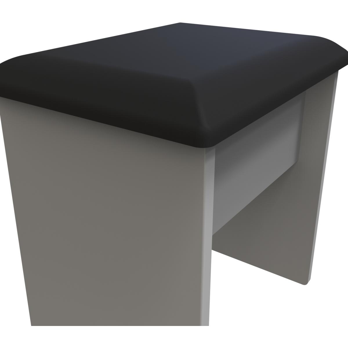 A small vanity stool. A light simple, yet sturdy design, with a soft cushioned seat. Makes an idea companion to a desk or vanity. Constructed from sturdy materials, this stunning range has been designed with today lifestyle in mind. With its clean lines and seductive colour palette, it will add sophistication and contemporary style to your home. All our furniture is made in the United Kingdom, to the highest quality. It is delivered direct to your location of choice by one of our two man delivery teams, and come full assembled (although legs may be removed to prevent damage in transit).
