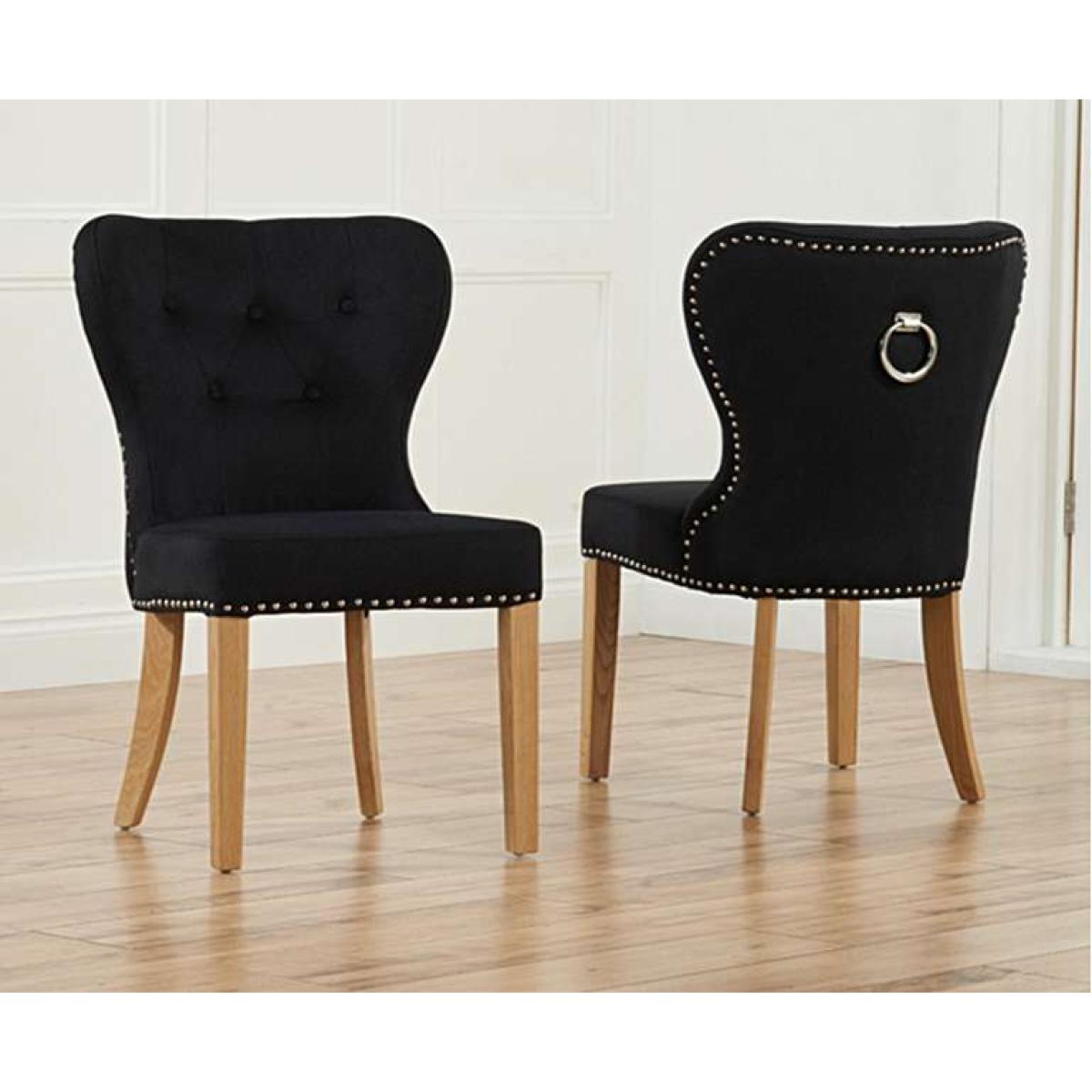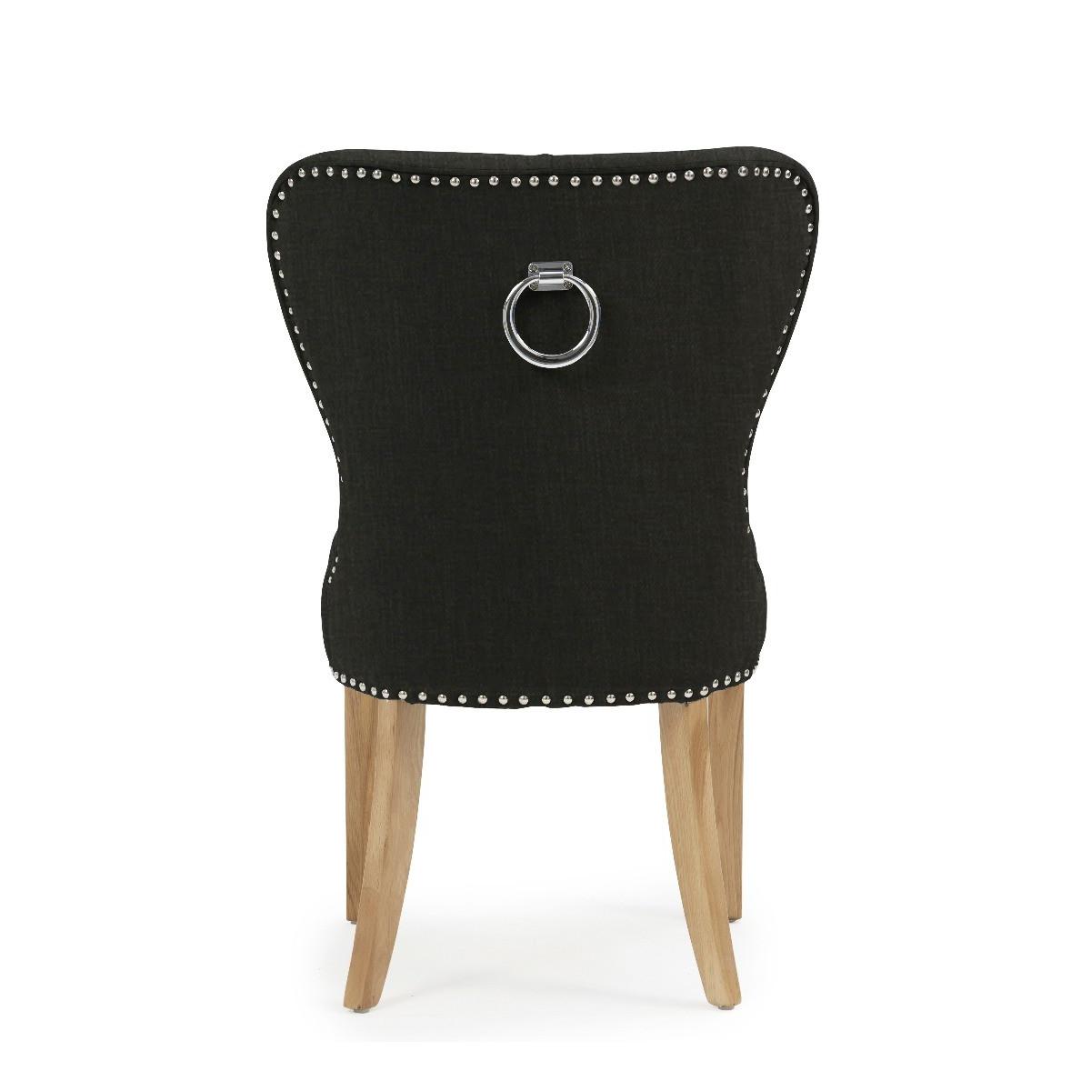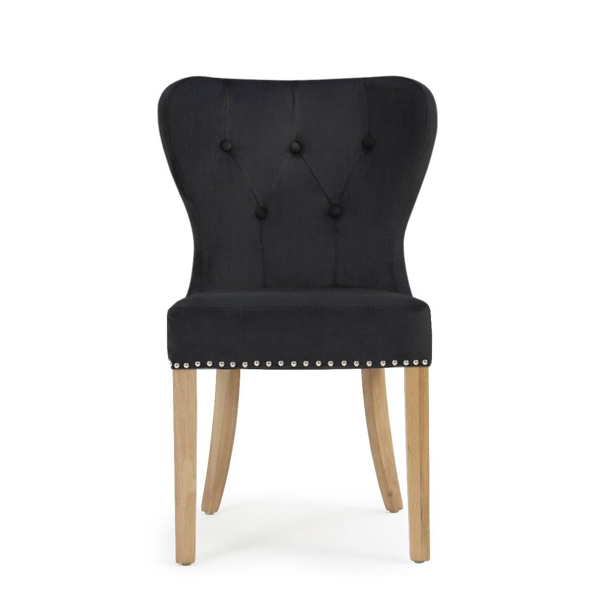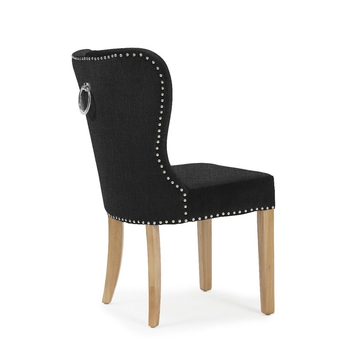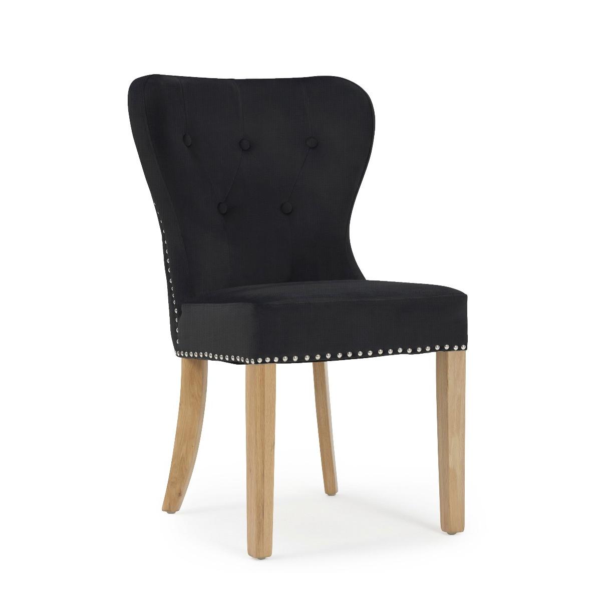 Knightsbridge Studded Black Fabric Oak Leg Dining Chairs - Black