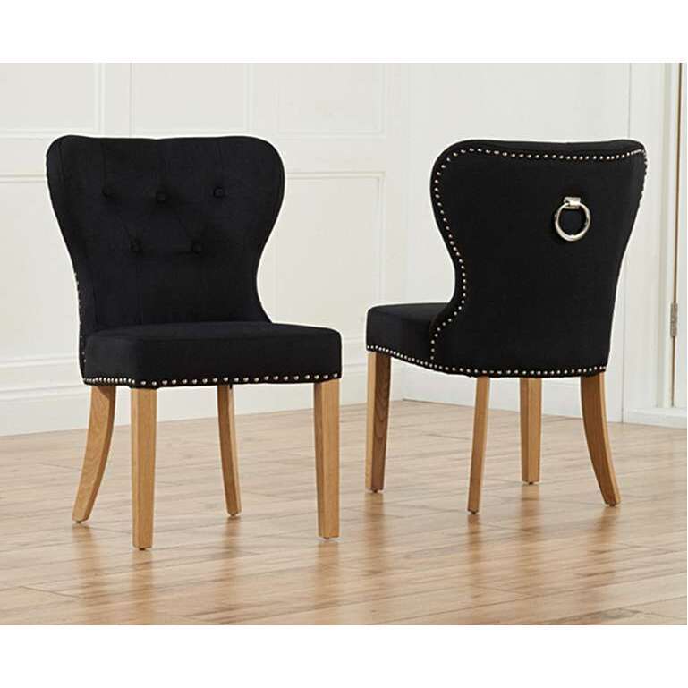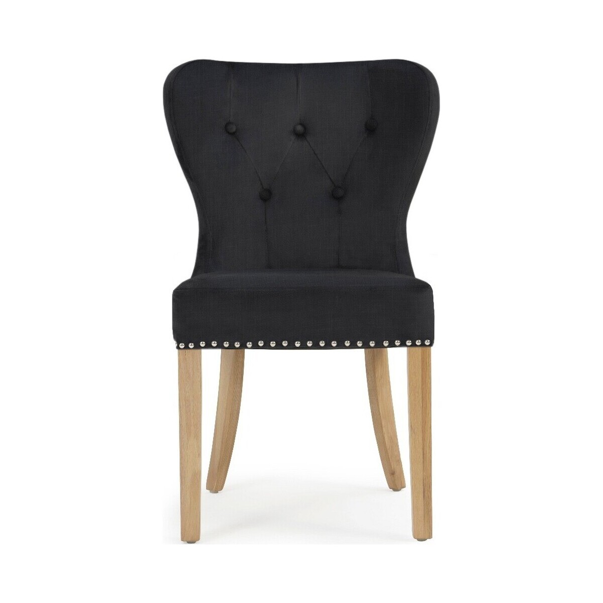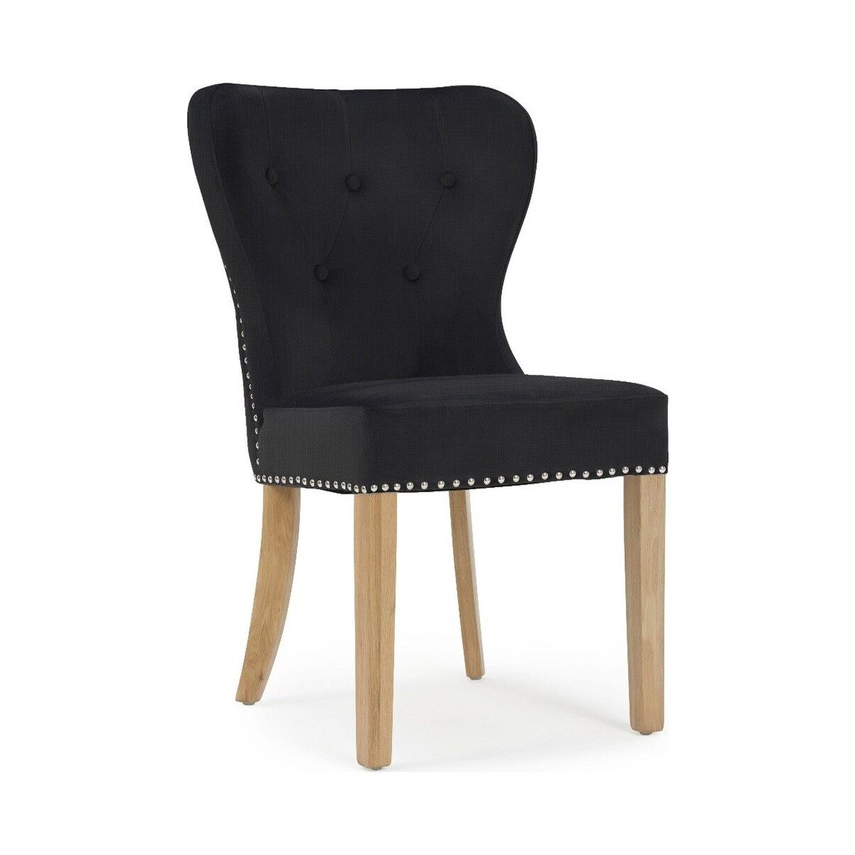 Knightsbridge Studded Black Fabric Oak Leg Dining Chairs