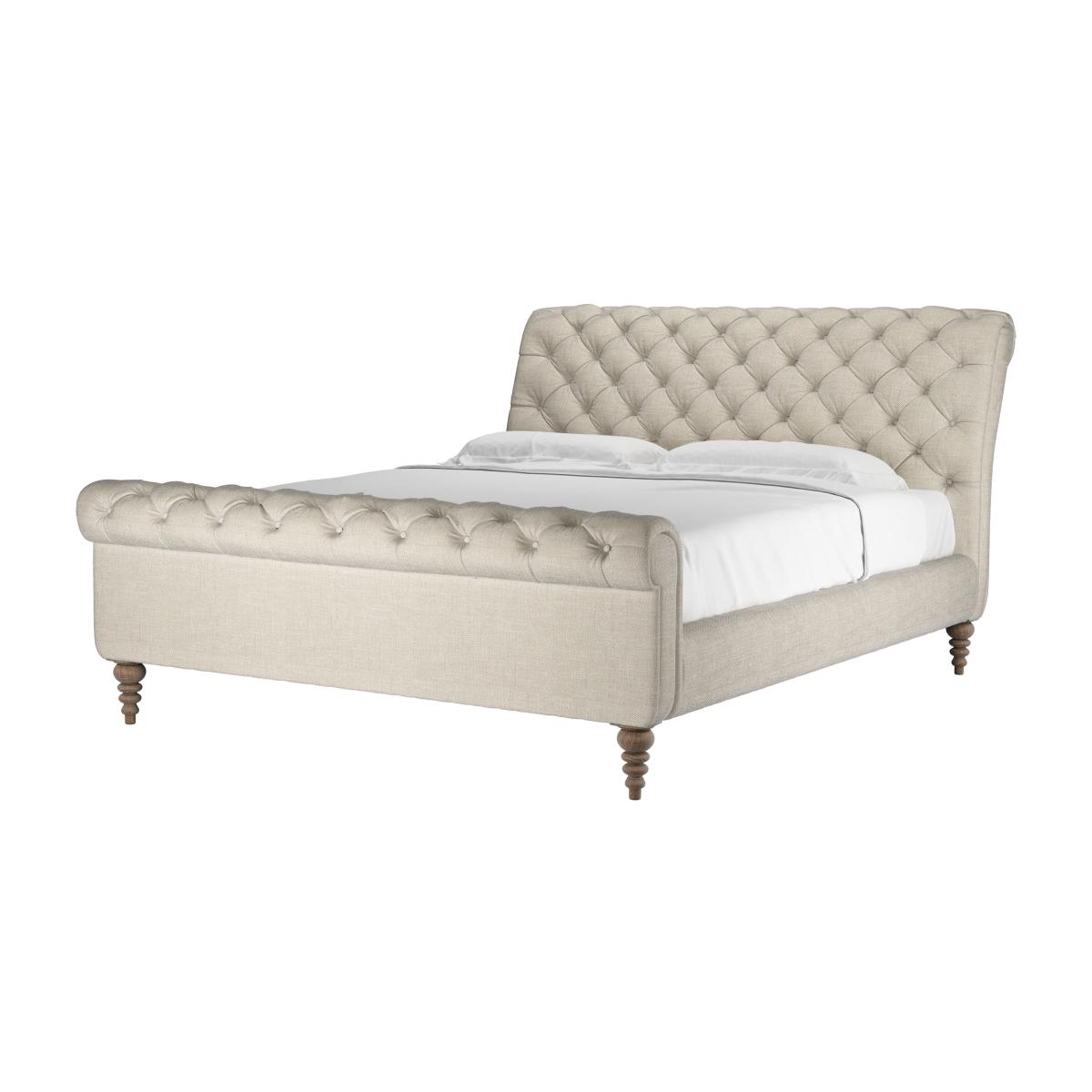 Our Knightsbridge bed is an ultra-luxe design, with a high headboard, turned legs and deep tufting. It is available with or without a scrolled, tufted footboard and has a graceful, curved silhouette which echoes features of a classic Chesterfield design.