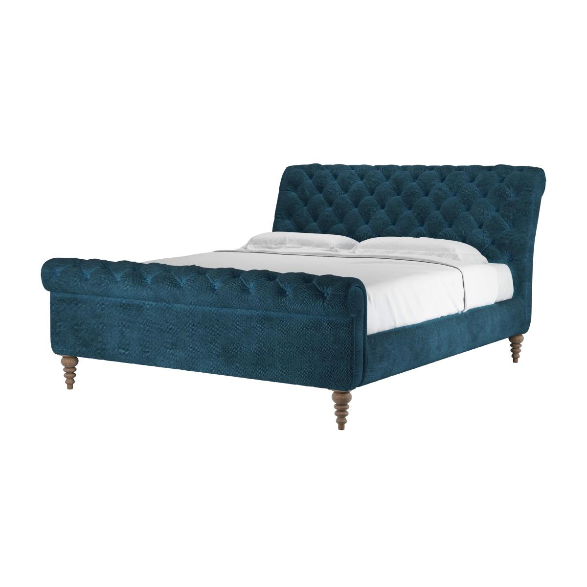 Our Knightsbridge bed is an ultra-luxe design, with a high headboard, turned legs and deep tufting. It is available with or without a scrolled, tufted footboard and has a graceful, curved silhouette which echoes features of a classic Chesterfield design.