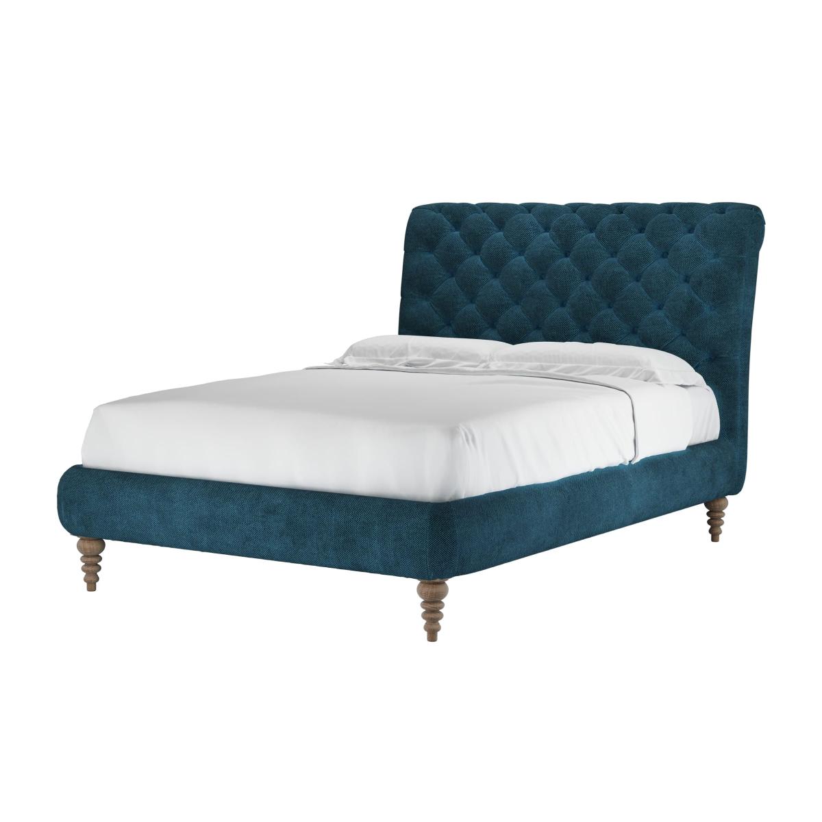 Our Knightsbridge bed is an ultra-luxe design, with a high headboard, turned legs and deep tufting. It is available with or without a scrolled, tufted footboard and has a graceful, curved silhouette which echoes features of a classic Chesterfield design.