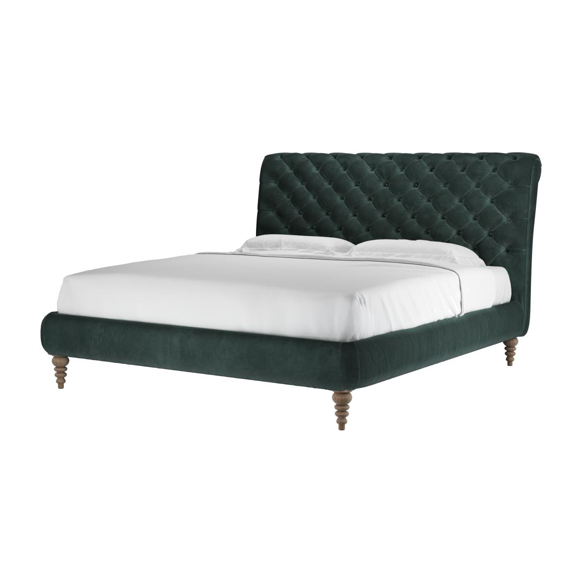 Our Knightsbridge bed is an ultra-luxe design, with a high headboard, turned legs and deep tufting. It is available with or without a scrolled, tufted footboard and has a graceful, curved silhouette which echoes features of a classic Chesterfield design.