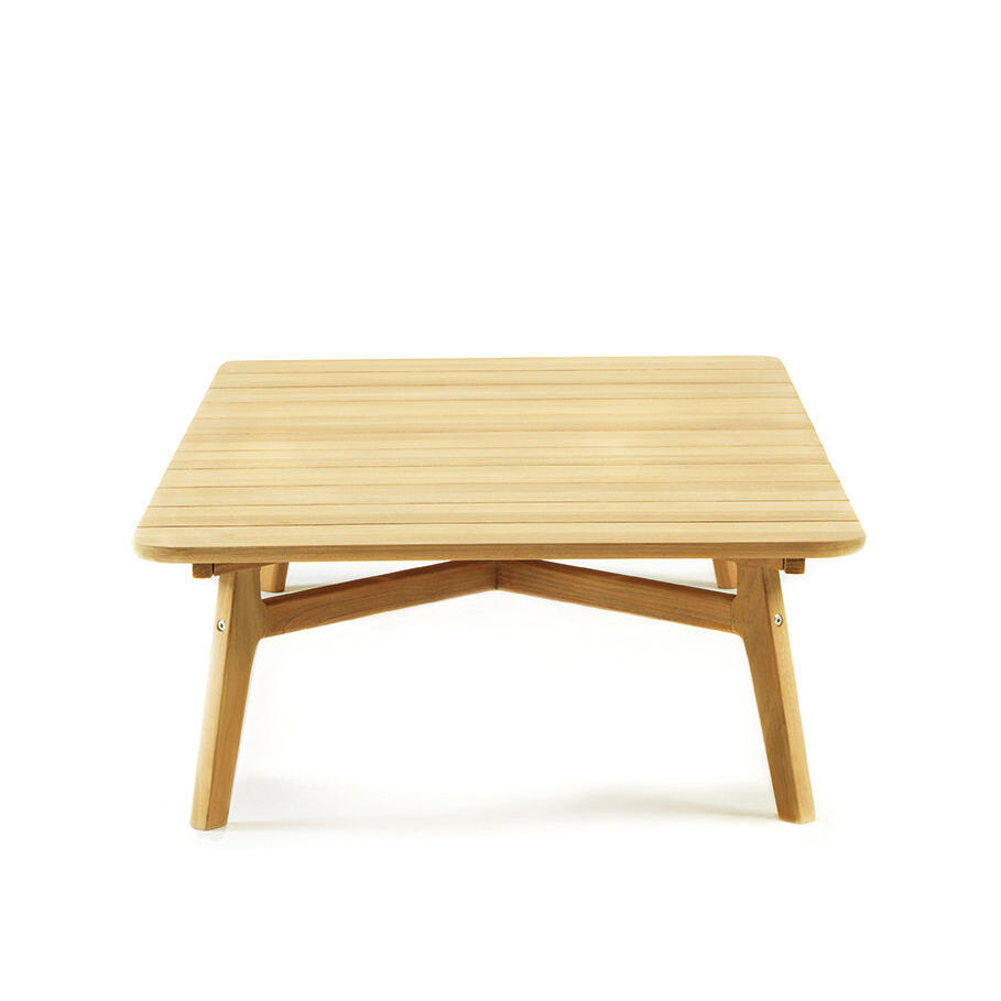 Elegant and versatile, this coffee table adapts to a range of environments. Highly robust, the Knit coffee table is made of solid teak, with a slatted top. This table with its soft, clean lines has a top with rounded corners. Teak - a naturally durable material - can take on a natural patina over time to display a silver colour. If you want to keep its natural shade, we recommend you treat it with oil.