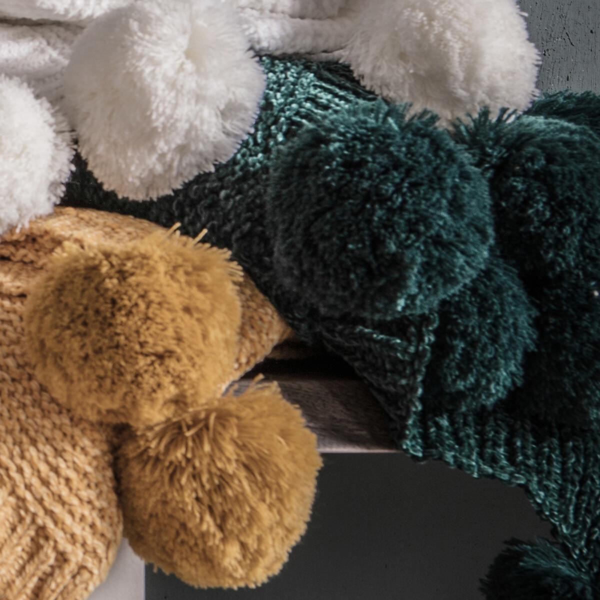 I really like this chunky knit throw with its playful pom-poms - it’s a great way to add colour and texture without overwhelming a space. It works particularly well in cosy, relaxed interiors such as Scandi-inspired or modern boho schemes, where its tactile quality can really shine. Practical styling tips include draping it loosely over a sofa or armchair for a casual look, or folding it neatly over the end of a bed to bring a splash of colour and softness. Its size makes it versatile for layering or using as a statement piece, and the vibrant hue can act as an instant update to neutral palettes. Overall, it’s both functional and stylish, perfect for adding warmth and personality to your interiors.