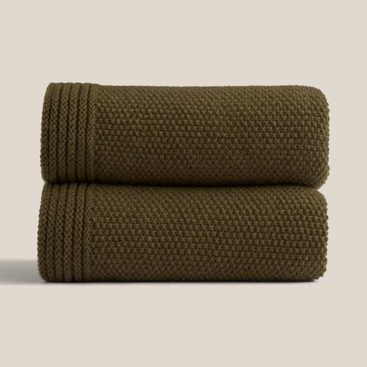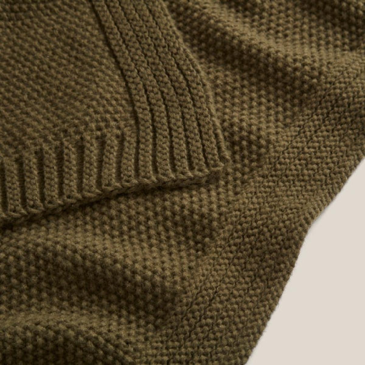 * Knitted texture * Versatile design * Made from polyester Add a cosy layer of texture with this beautifully knitted olive bedspread. Crafted from 100% recycled polyester, it’s soft, warm, and thoughtfully designed. Whether draped over your bed or gifted to a loved one, its unique knit pattern and earthy tone bring comfort and style to any space.