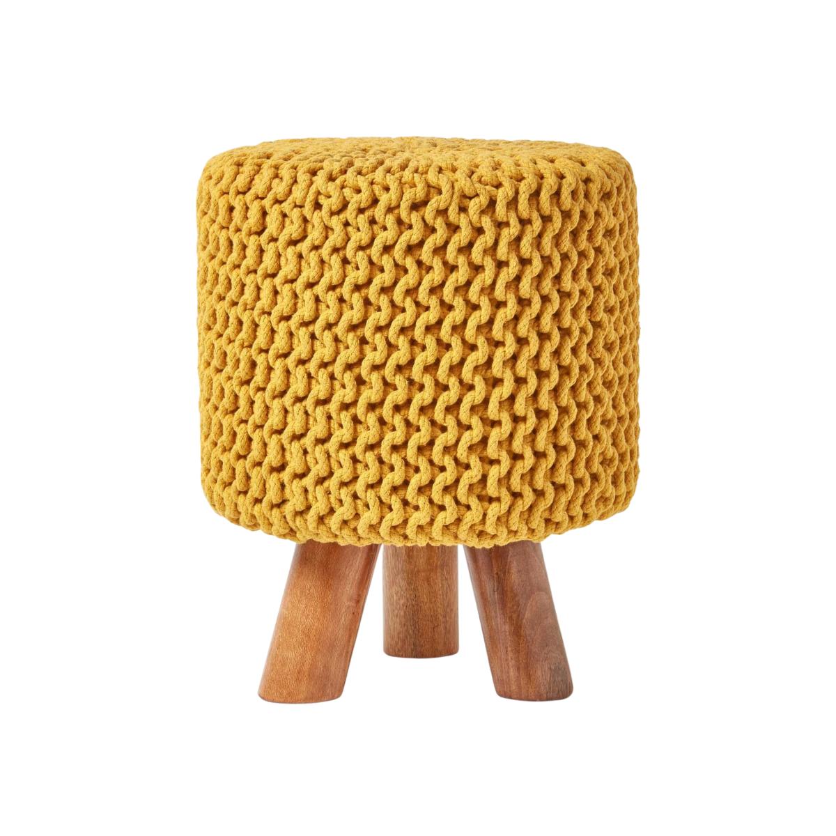 Knitted footstool from Homescapes knitted pouffe collection. This modern style pouffe is cylinder in shape and sits on top of a solid wooden base and 3 sturdy wooden legs. A versatile piece of furniture that can be used in living spaces, conservatories or bedrooms, this vibrant teal blue will add a splash of colour into any home. Handcrafted by skilled artisans, the teal cover is woven from 100 cotton in a chunky knit braided design. A surprisingly light weight footstool that can be easily moved around your home when required this multi-functional accessory is ideal for small homes and apartments. To care for your pouffe it is recommended that you spot clean it only.