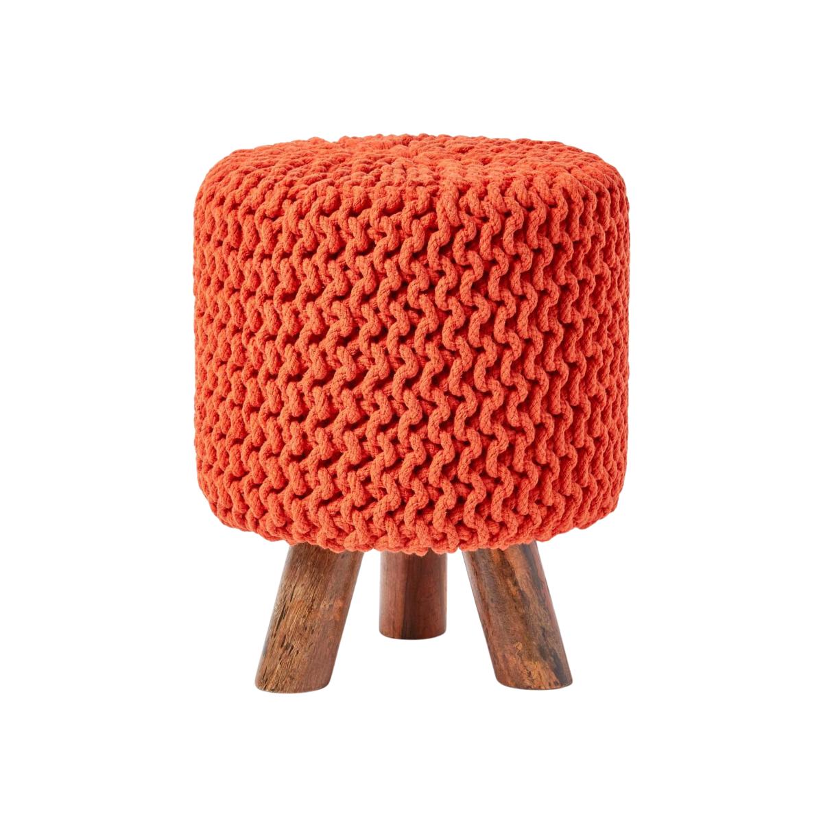 Knitted footstool from Homescapes knitted pouffe collection. This modern style pouffe is cylinder in shape and sits on top of a solid wooden base and 3 sturdy wooden legs. A versatile piece of furniture that can be used in living spaces, conservatories or bedrooms, this vibrant teal blue will add a splash of colour into any home. Handcrafted by skilled artisans, the teal cover is woven from 100 cotton in a chunky knit braided design. A surprisingly light weight footstool that can be easily moved around your home when required this multi-functional accessory is ideal for small homes and apartments. To care for your pouffe it is recommended that you spot clean it only.