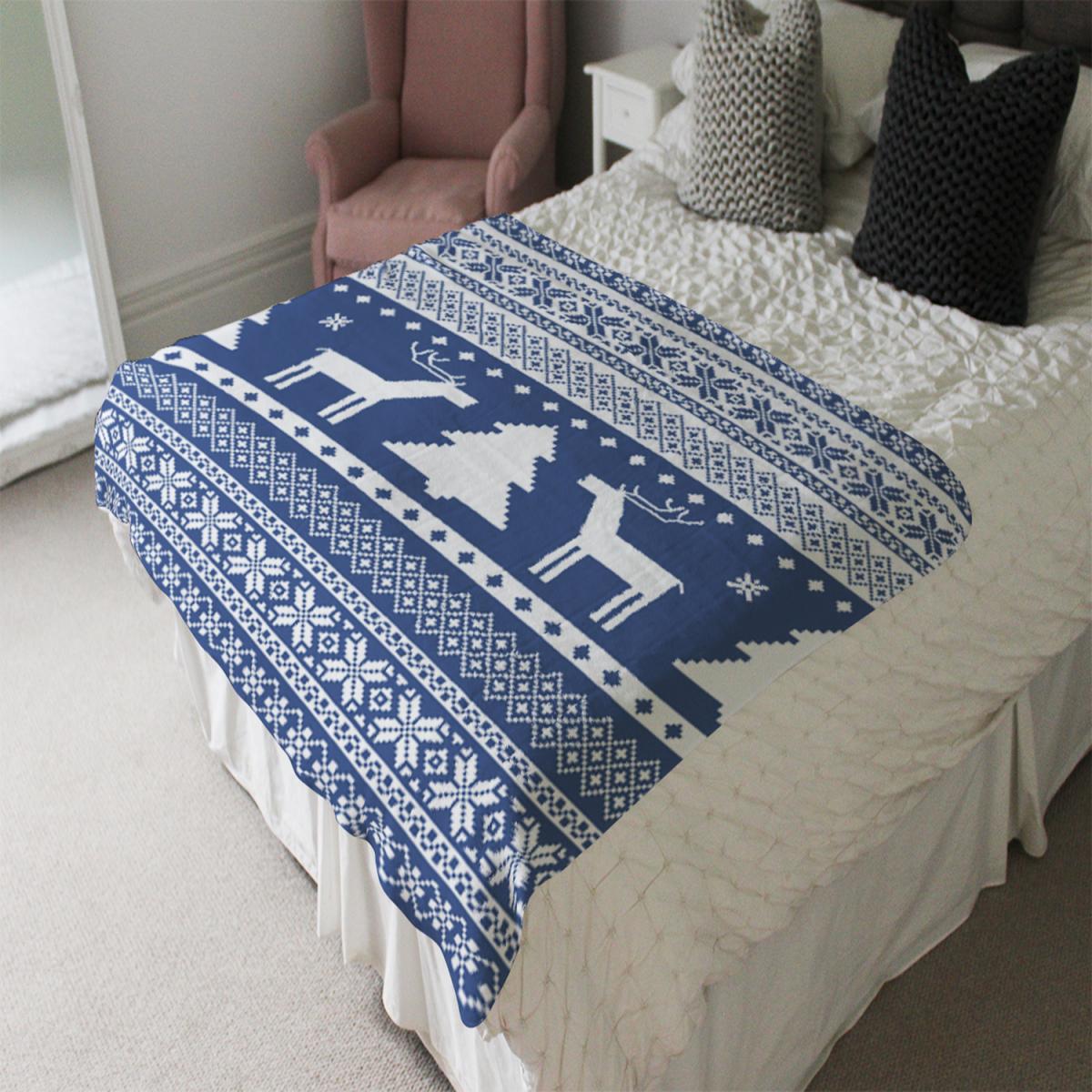Knitted Ornamental Pattern Soft Blanket - Blue