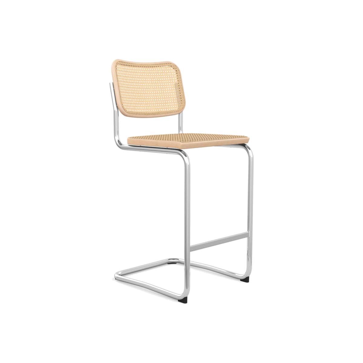 A master of design innovation, Marcel Breuer married traditional craftsmanship with industrial methods and materials to help make tubular steel furniture an international sensation. In honour of the 100th anniversary of the Bauhuas, the Cesca Chair is elevated to new heights - namely bar. Much like its earlier predecessors, the Cesca stool fuses materials in a simple yet sophisticated way. The cantilevered frame emphases the strength of steel, lending the stool added flexibility and comfort. Whilst the woven wicker frame brings charm and character to the design.