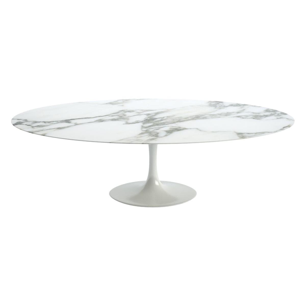 Knoll Saarinen Dining Table with White Base in Brown Emperador 120cm