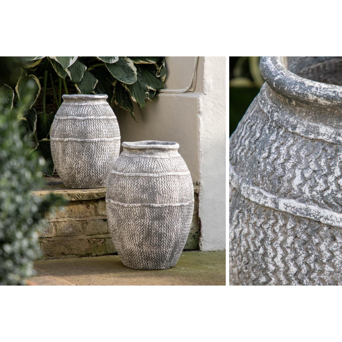 An ancient relic recovered from the ruins the Knossos Vase is full of classical charm. Made with rough textured grey cement for that ancient find look this vase will look great used indoors or out, adding some stand out style to any space.