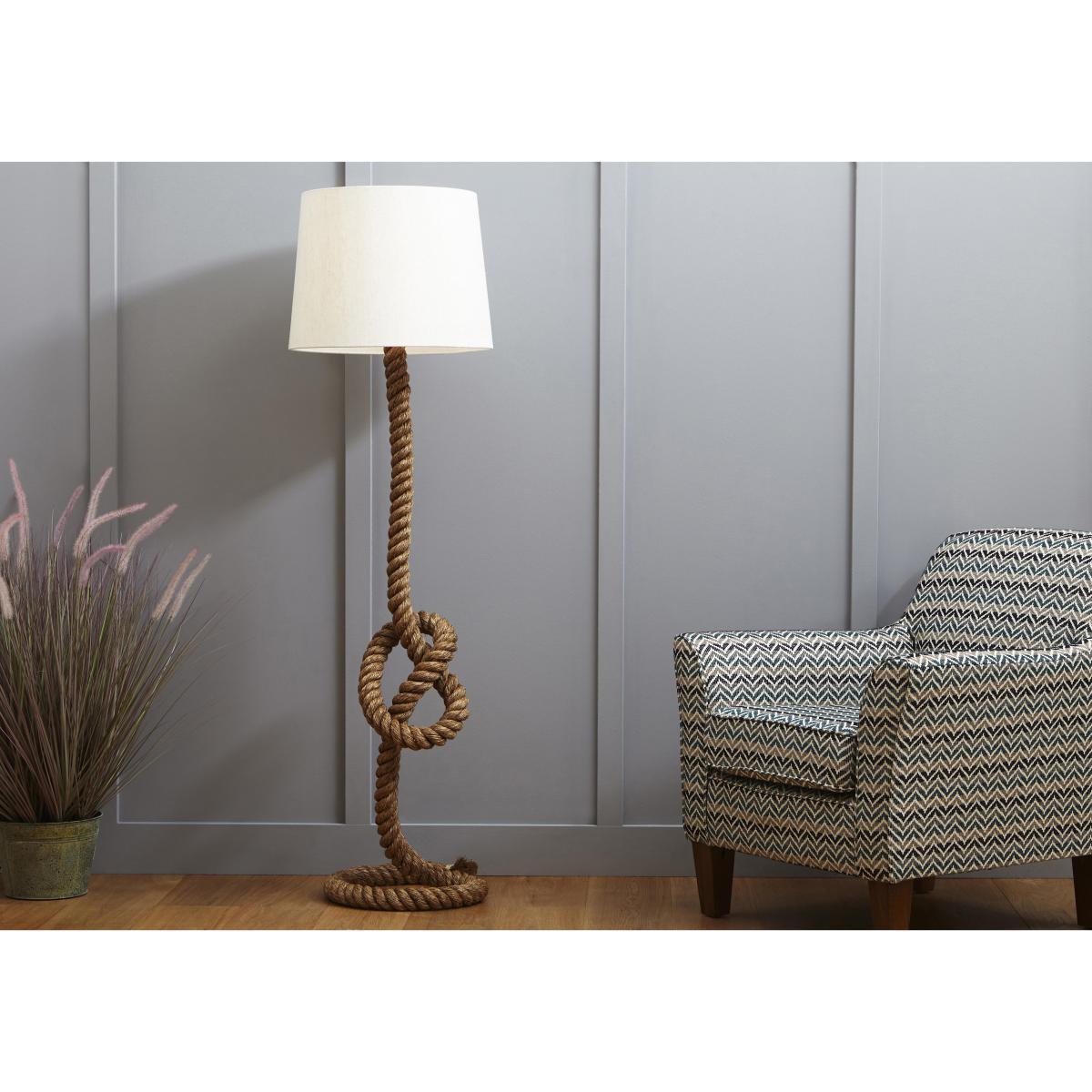 Reminiscent of the classic Indian rope trick, the Knot Floor Lamp appears to be just like the ingenious optical illusion as its rope-look stem holds its shape without visible support thanks to clever engineering. This striking and unusual floor lamp is topped with a tapered cylinder shade in white. Perfect as a talking point and to create ambient lighting in the corner of your living room, bedroom or hallway this fun and quirky floor lamp would be ideal for a nautical themed interior, or any stylish contemporary home. Dimensions. Width: 45cm (18in). Height: 150cm (59in).