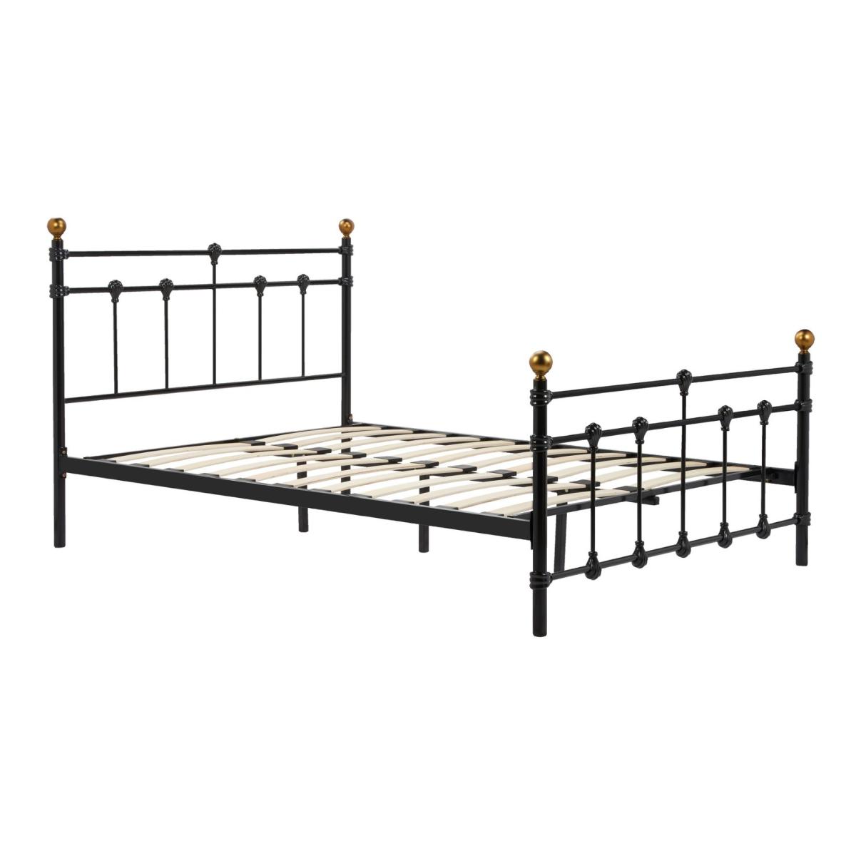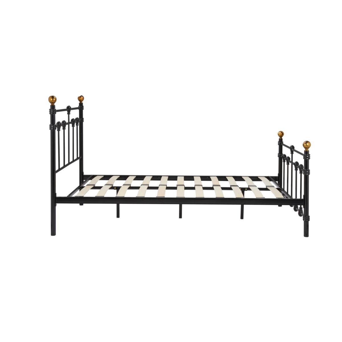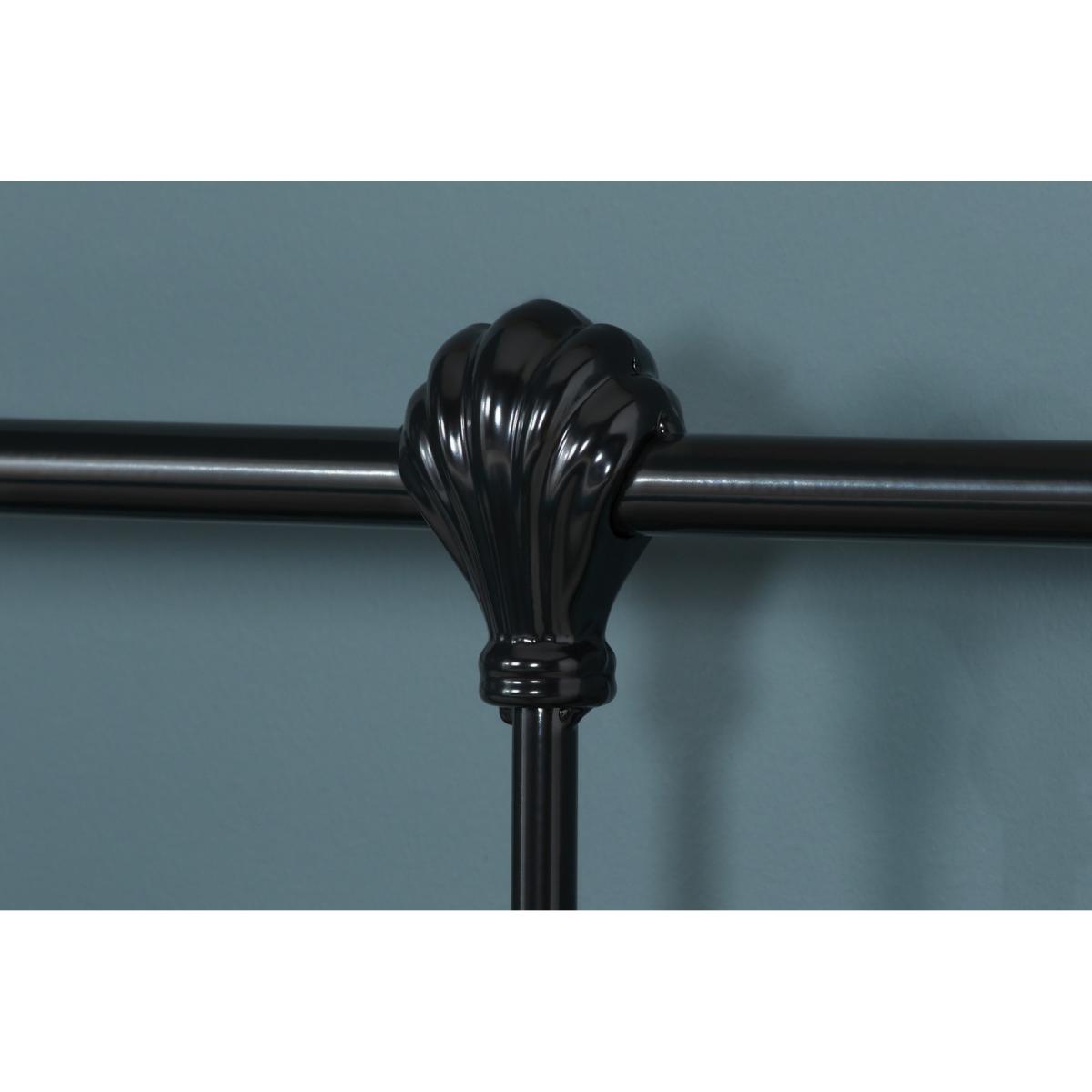 Traditional in style, the Knox bed features a detailed framework with antique brass finials – adding luxury to any bedroom. With a steel frame finished with epoxy powder coated paint in a jet black, it’s the perfect match for classic bedrooms. Pair with a UK standard size mattress.198.7cm in length. Easy to assemble. Slatted sprung base to provide greater comfort Jet black colour and luxurious styling