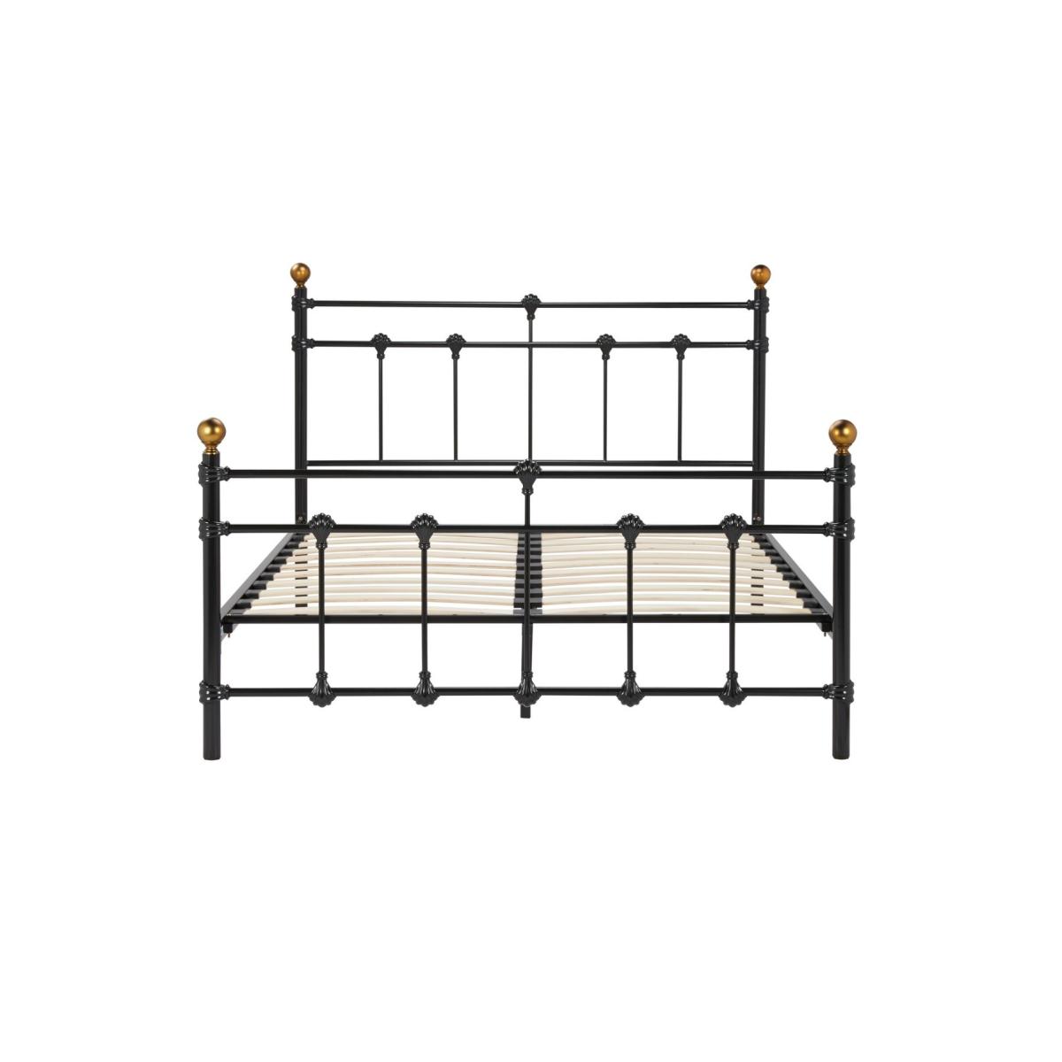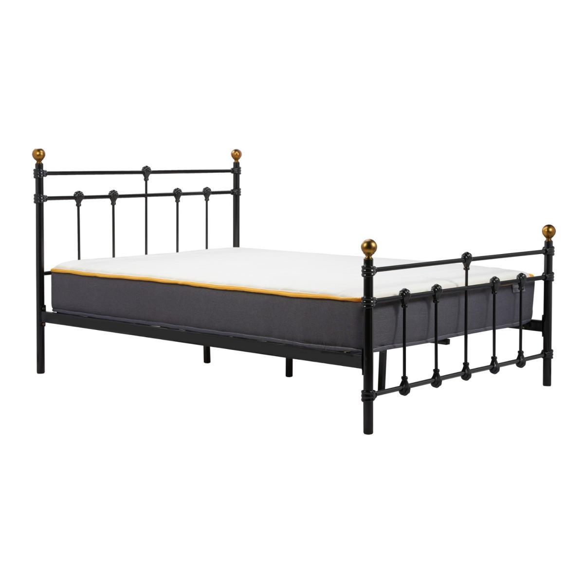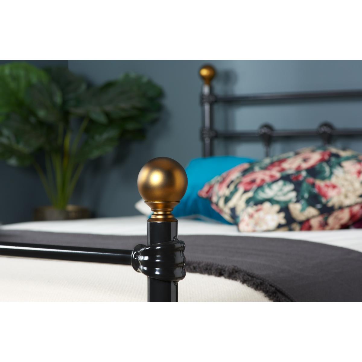Traditional in style, the Knox bed features a detailed framework with antique brass finials – adding luxury to any bedroom. With a steel frame finished with epoxy powder coated paint in a jet black, it’s the perfect match for classic bedrooms. Pair with a UK standard size mattress.198.7cm in length. Easy to assemble. Slatted sprung base to provide greater comfort Jet black colour and luxurious styling