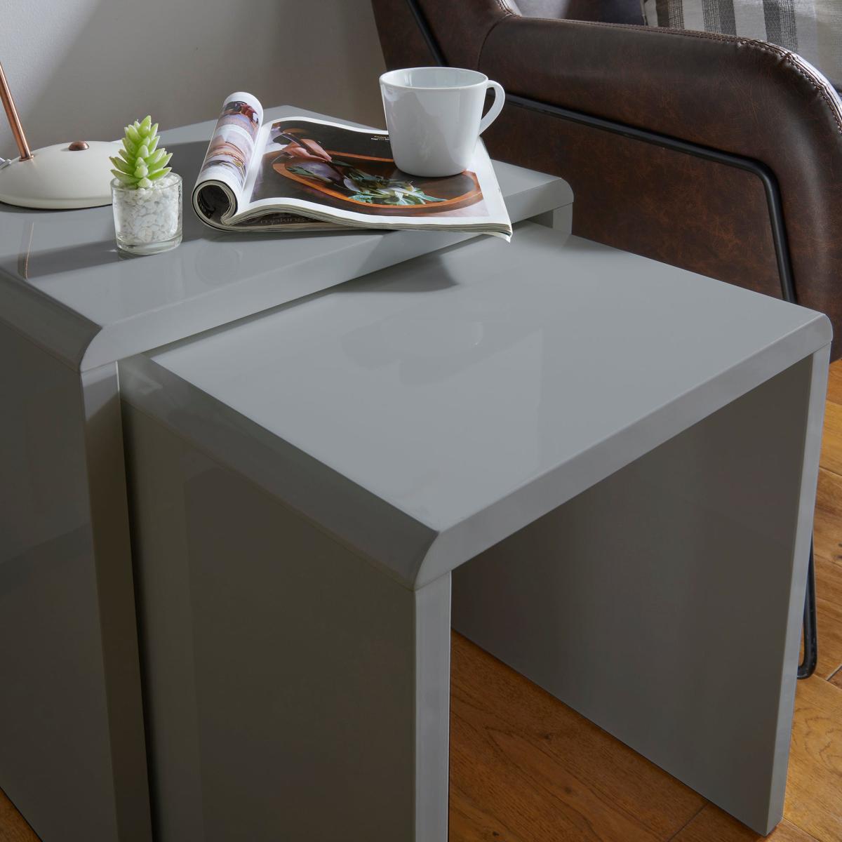 The Knox Nest of Tables will add a modern and contemporary feel to your home. This nest of tables features ample table top space and is a real space saver around the home offering versatility where space is at a premium. With a gloss finish, these tables are super easy to clean, making them a practical and stylish solution for your home. Available in a choice of two colours to complement your interior.