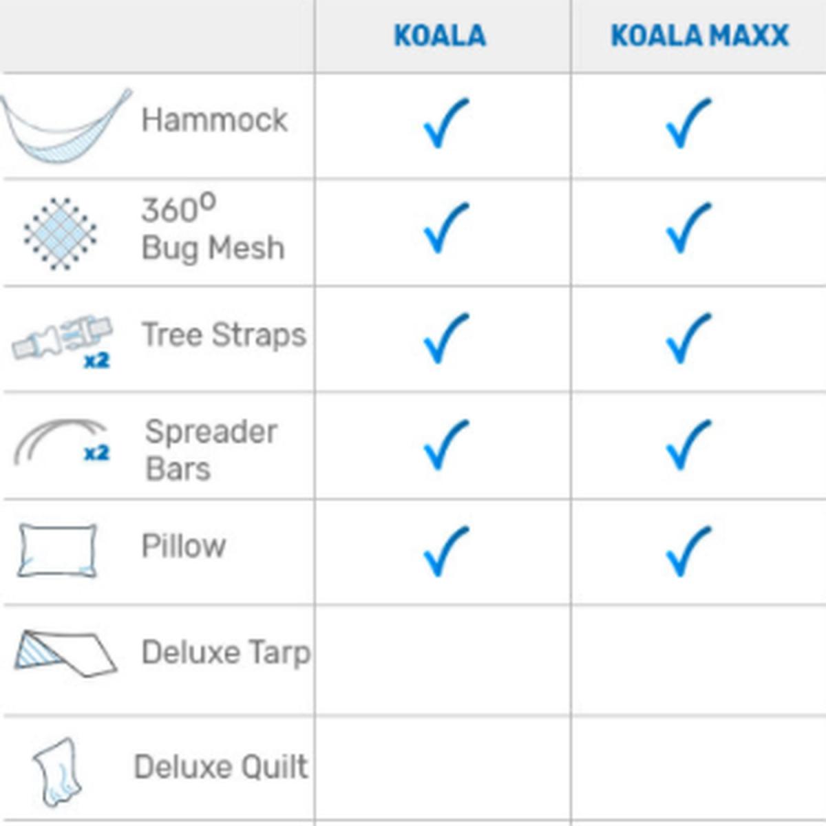 Koala Maxx 2 Person Hammock with Bug Net, Air Pillow and Tree Straps - Blue