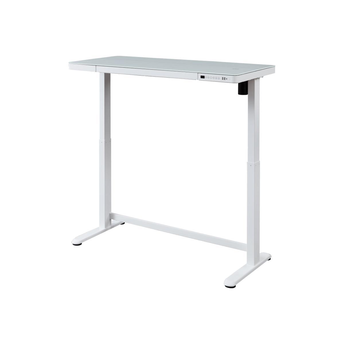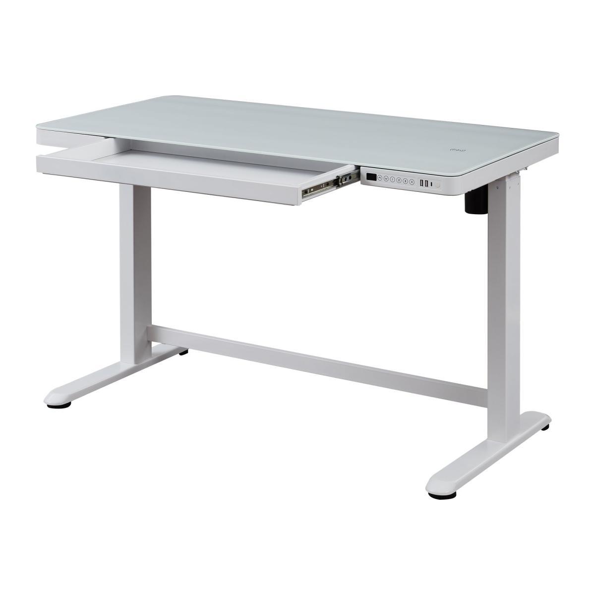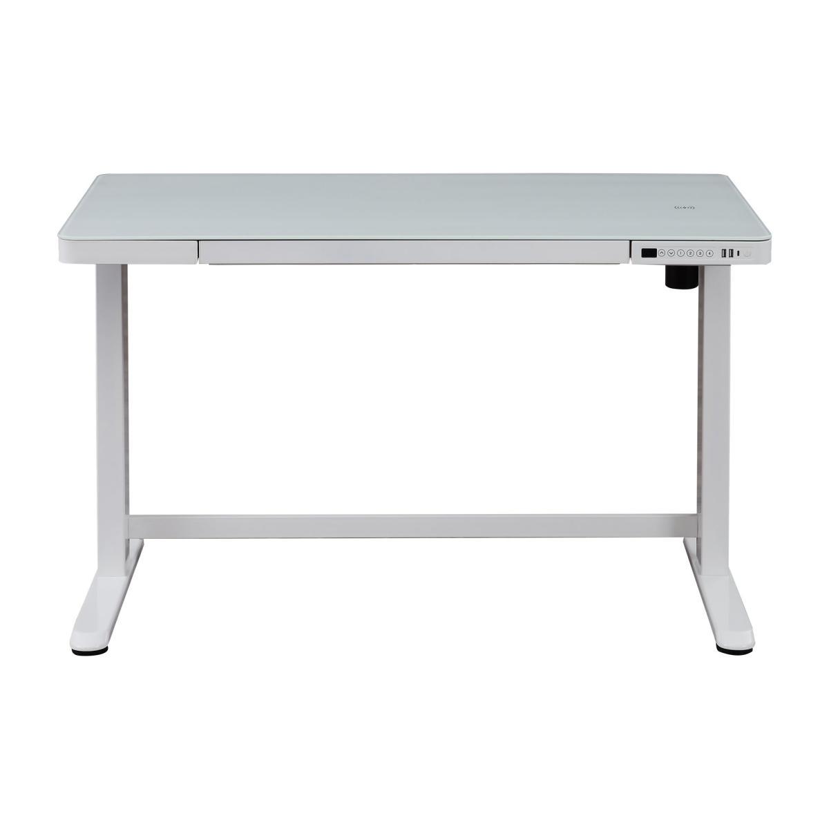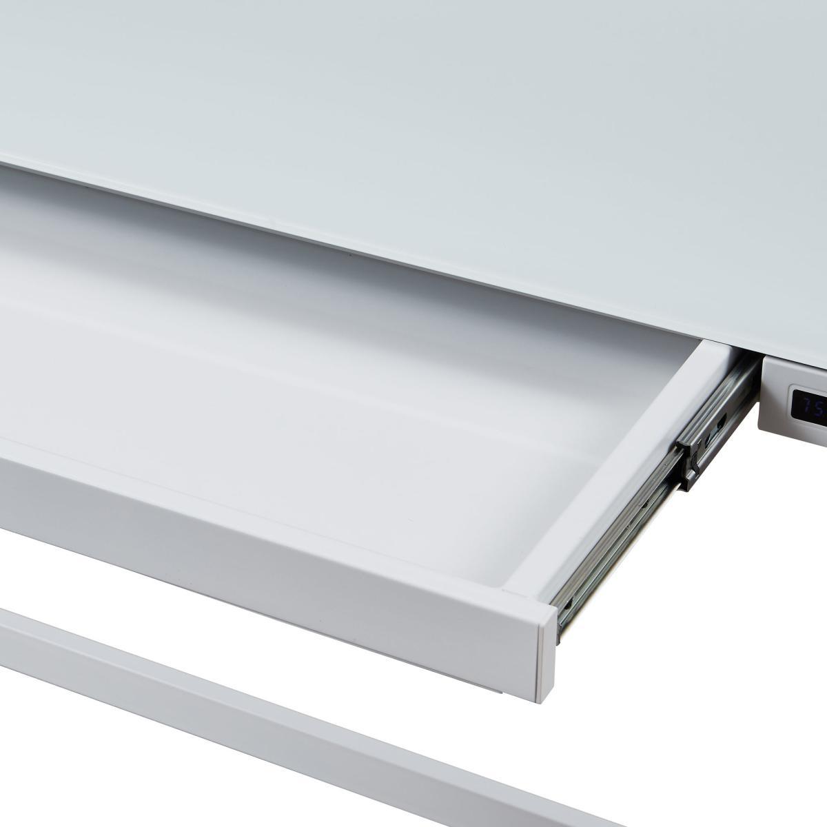 Designed for professionals with an active lifestyle, the Juno Smart Desk features an intuituve motorised height adjustment system. The dual motor promotes seamless movement which allows you to easily transition from sitting to standing without need to clear your desk. Establish your perfect height using the control panel with its built in LED screen and save up to 4 positions using the in-built memory settings. The Juno desk also makes charging your devices simpler, thanks to the integrated wireless charging pad, two USB charging points and a C charge point, allowing you to keep almost any device fully powered throughout the day. Complete with a soft close drawer with enough space for small laptops, tablets and other devides, this desk is as stylish as it is practical, featuring a white toughened glass work surface with a white painted metal frame that would complement any home decor.