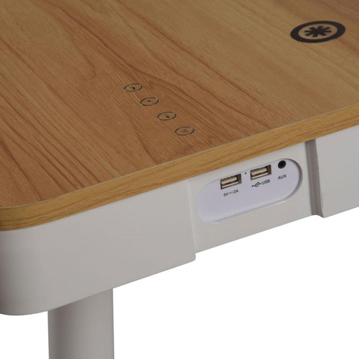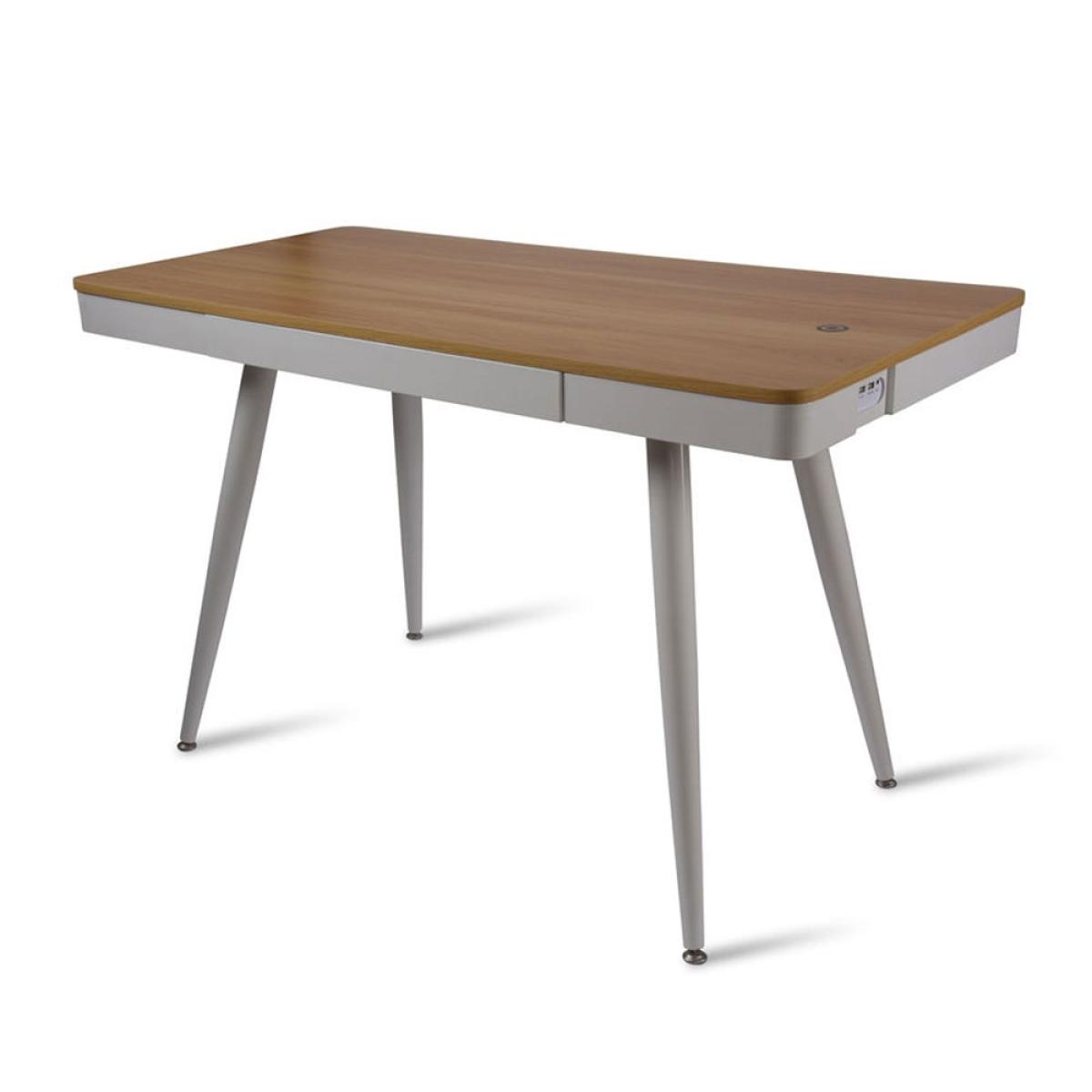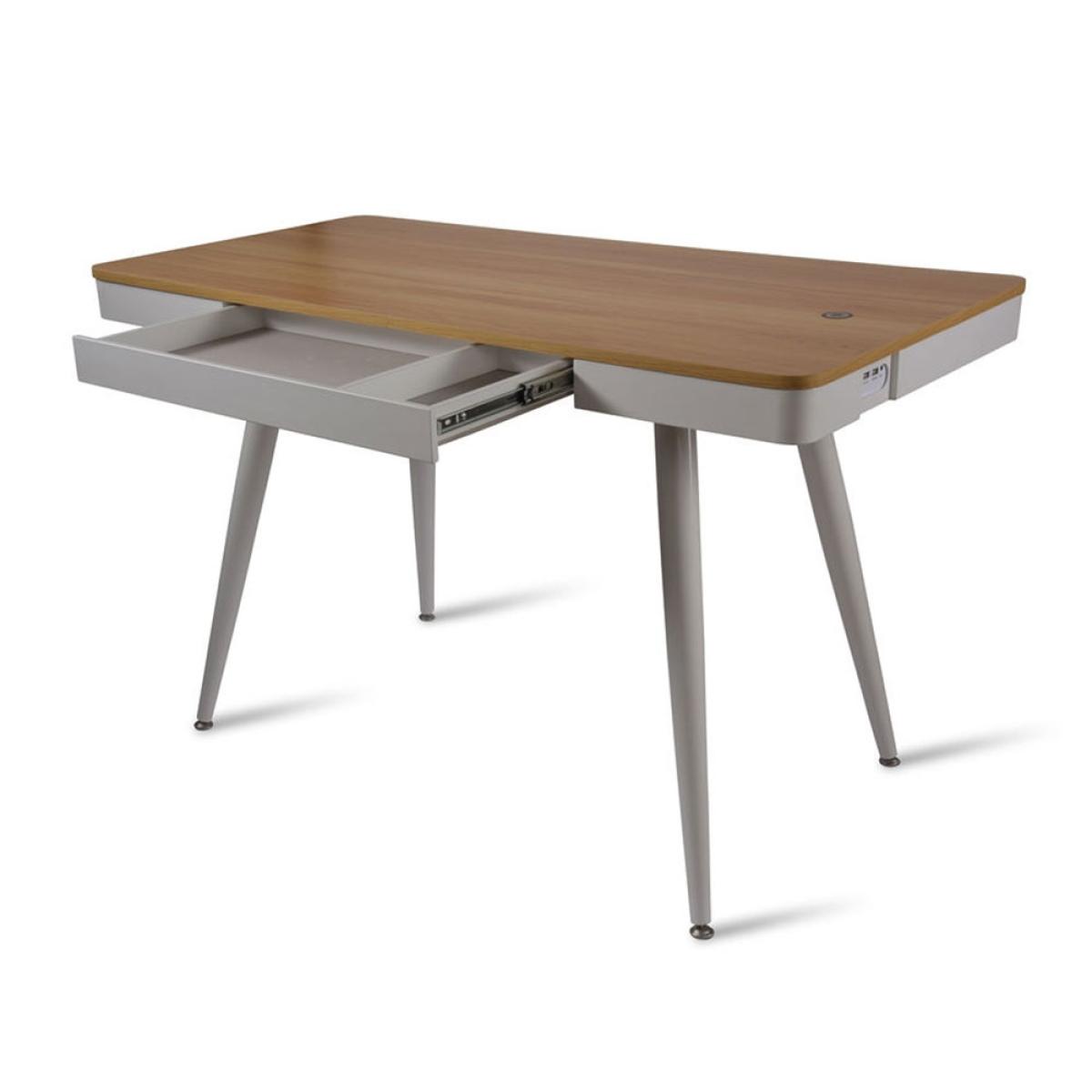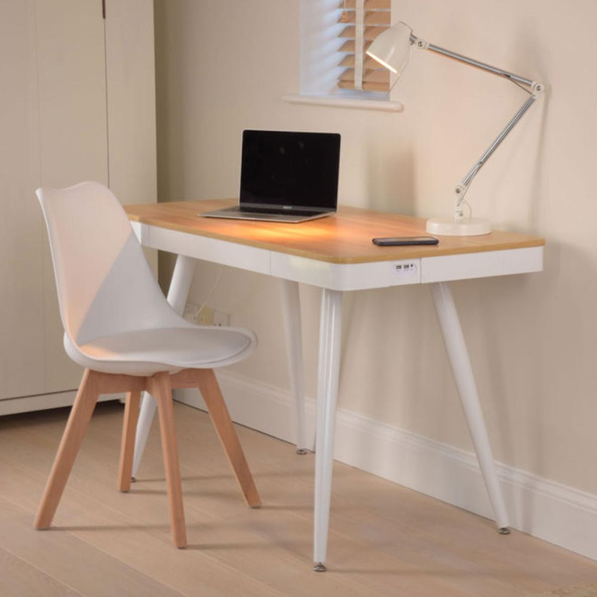 Bring your home office into the 21st century with the Skala Smart Desk from Koble. Crammed with hidden features; you'll have everything you need at your fingertips. Including hidden Bluetooth speakers, connect your device and pop on your favourite motivational playlist or audiobook of the moment! With touch sensitive buttons built-in to the tabletop, turning down the volume or hitting pause will be one easy task. Complete with a wireless charging surface, you'll never be without battery! Just set down your compatible smartphone or tablet and you're ready to go! Don't have a wireless device? Fear not, there are USB points too. With white metal legs and handy storage drawer, when your desk looks this good there'll be nothing stopping you! With other Smart designs available from Koble, update your home with their range of multifunctional beds and side tables!.