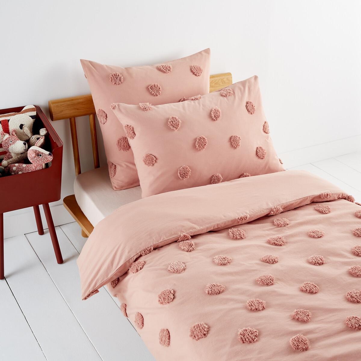 I love this cotton percale duvet cover for its simple, breathable design and soft, natural feel-making it ideal for children’s bedrooms. Its subtle blush tone with playful dot pattern adds a touch of charm without overpowering other decor elements. It works well in both minimal and more eclectic interiors, especially when paired with wooden or pastel-toned furniture for a cosy, welcoming look. Practical tips include layering with neutral or textured bedding to create dimension, and adding colourful cushions or throws for a personalised touch. Its organic cotton construction also makes it a durable, easy-to-care-for option for everyday use.