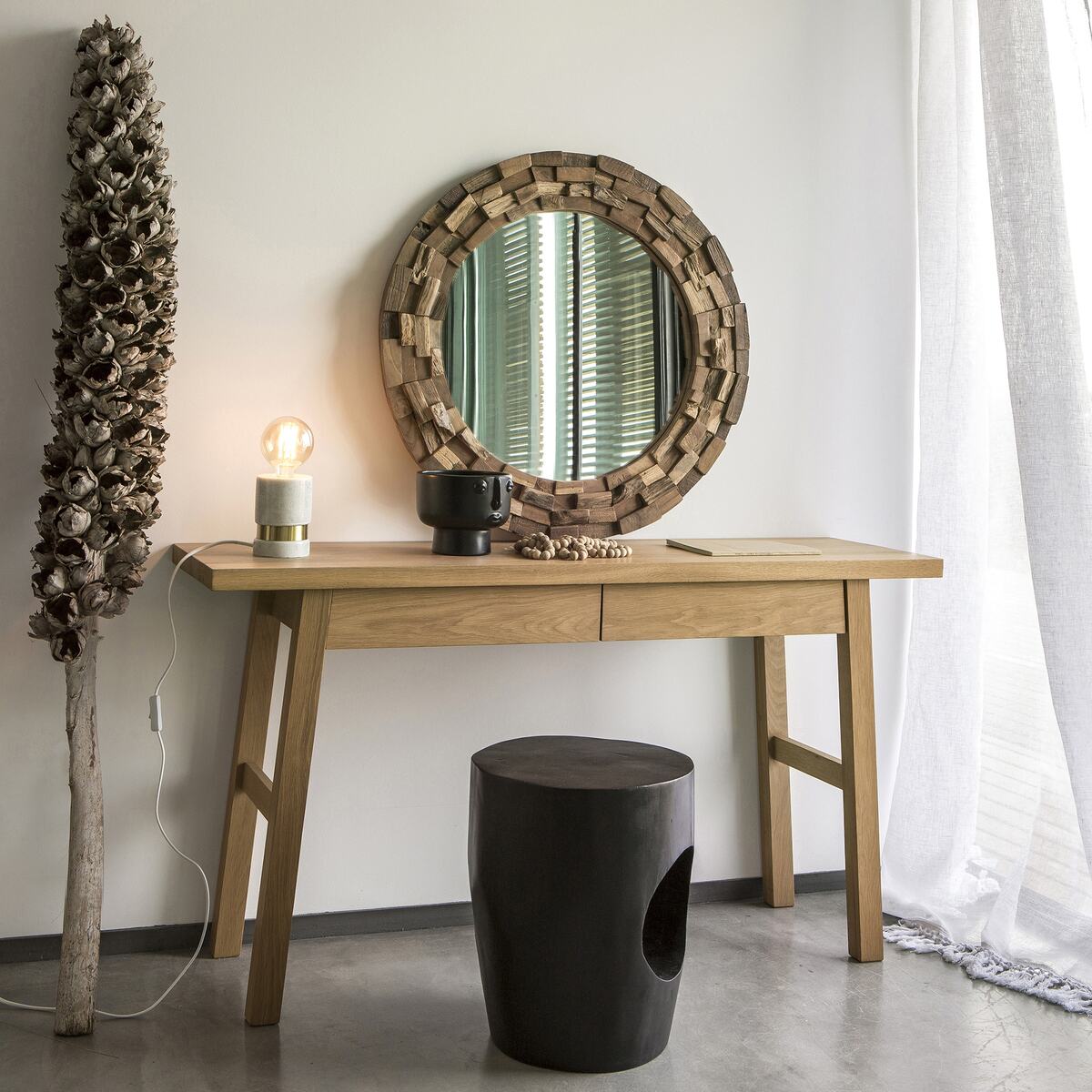 I love this little side table because of its distinctive shape and rich mango wood finish, which adds warmth and texture to any space. It's particularly effective in contemporary and bohemian interiors, where the clean lines and natural material complement both minimalist and eclectic styles. For styling tips, consider using it as a statement piece beside a neutral sofa or bed, and layer in decorative objects like small vases, candles, or books on top. The circular cut-out detail can also be utilised creatively-perhaps as a display space or a feature to add visual interest. It's a practical yet stylish addition that works well in living rooms, bedrooms, or even as a standalone accent piece.