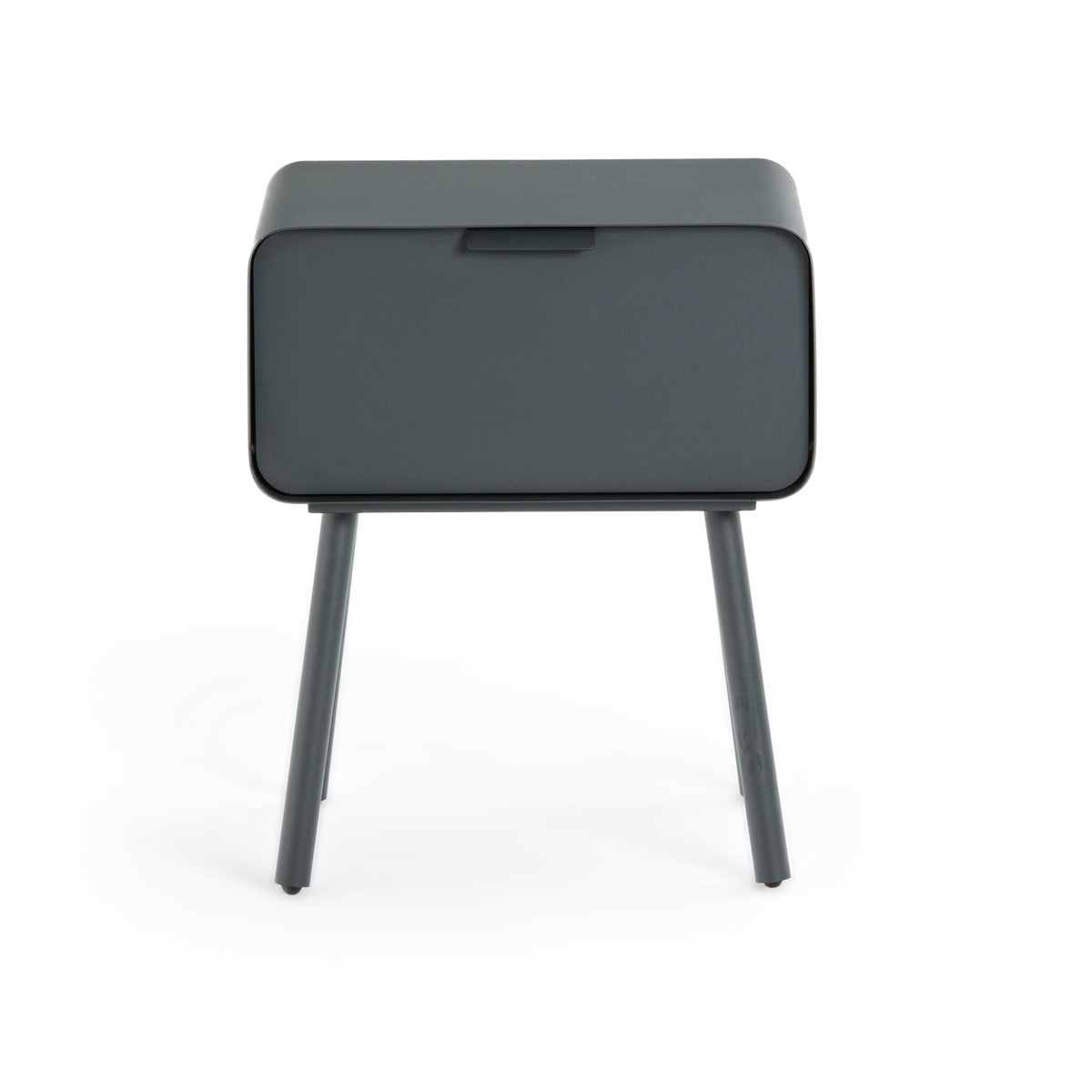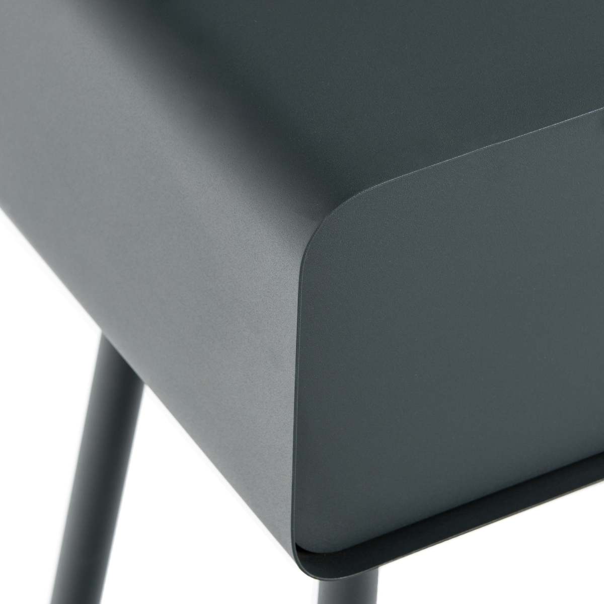 I love this little metal bedside table for its sleek, contemporary design and versatile appeal. Its minimalist silhouette works well in modern interiors, especially in monochrome or industrial schemes, but it can also add a chic edge to softer, more eclectic bedrooms. Practical styling tips include keeping the surface clutter-free with a small clock, a reading lamp, or a favourite book. Its clean lines make it easy to pair with various bed frames, from upholstered to wooden, and it's great for small spaces thanks to its compact size. The dark metal finish also lends itself to pairing with darker accents or contrasting textures, making this piece both functional and style-savvy.