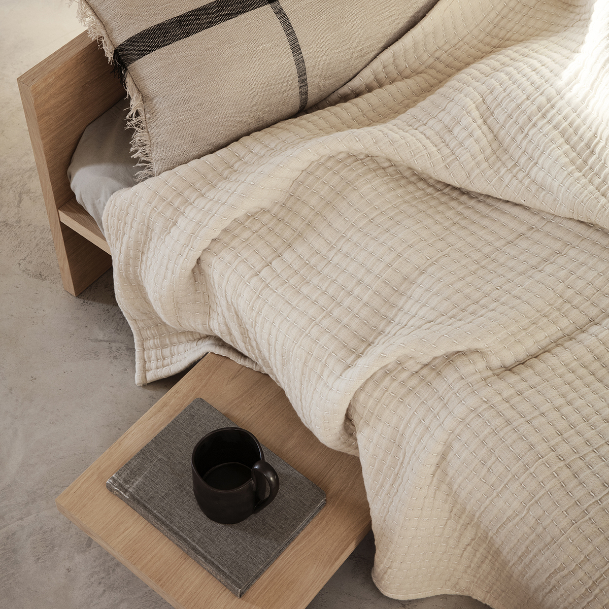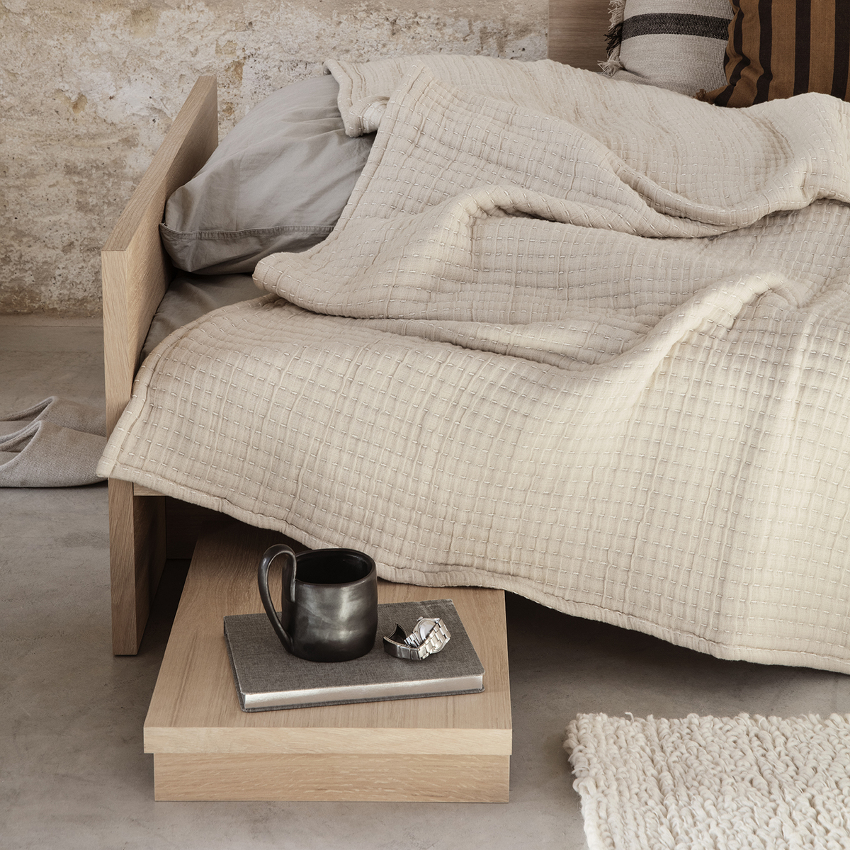 I love the Kona side table for its clean lines and warm oak finish - it’s a versatile piece that suits both Scandi-inspired and modern country interiors. The low-profile design keeps visual weight minimal, making it equally at home beside a sofa or at the foot of a bed. For styling, group a small potted plant and a stack of design books on one side to balance the open space underneath, or perch a table lamp and decorative tray on top. Its neutral tone works beautifully alongside matte-black metal accents or soft muted textiles, so you can easily update your scheme without changing the table.
