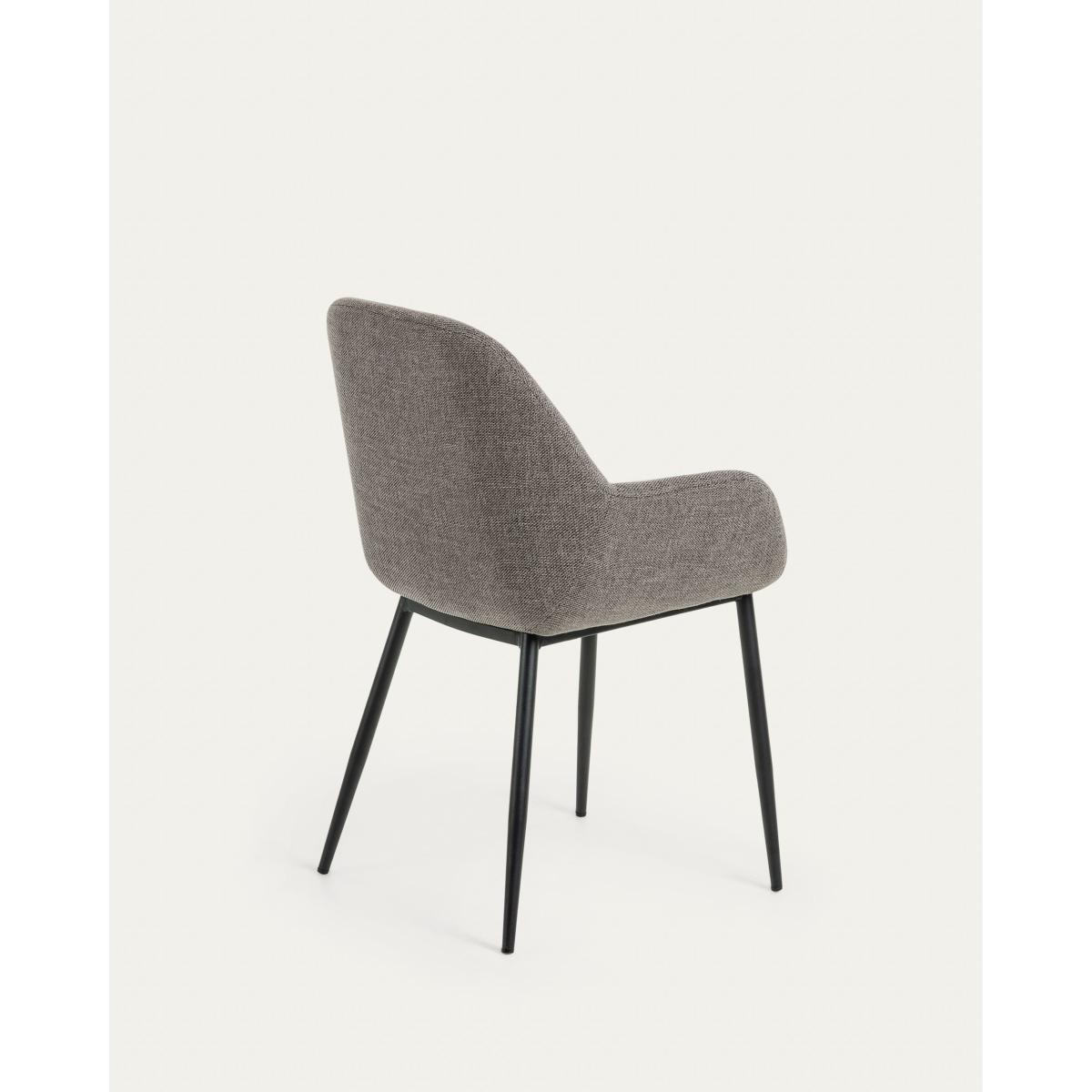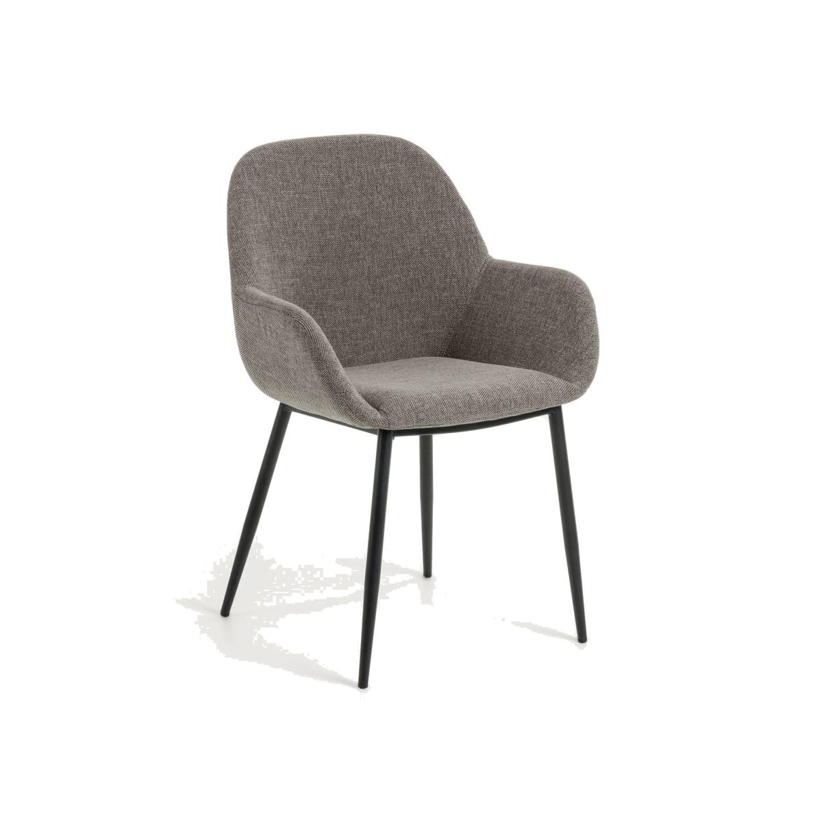 I’m a big fan of the Konna chair in light grey because its clean lines and soft upholstery suit a wide range of schemes from Scandinavian-inspired spaces to pared-back modern homes. The subtle grey tone acts as a neutral backdrop, while the slim black legs add a touch of contrast without feeling heavy. Its fire-retardant fabric also makes it a practical choice for both dining and living areas. For styling, pair the chair with a warm-toned oak table or desk to introduce natural texture, or team it with a plush woollen throw in muted teal for a hint of colour. In a hallway or dressing area, tuck it under a console and top with a sleek lamp. Because of its modest width, you can easily line two or three along a wall to create an informal seating spot in a study or breakfast nook.