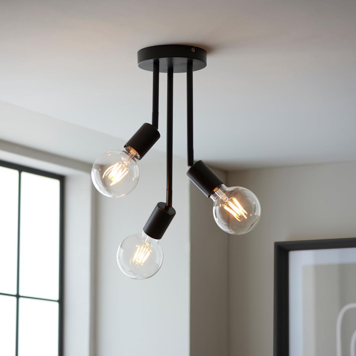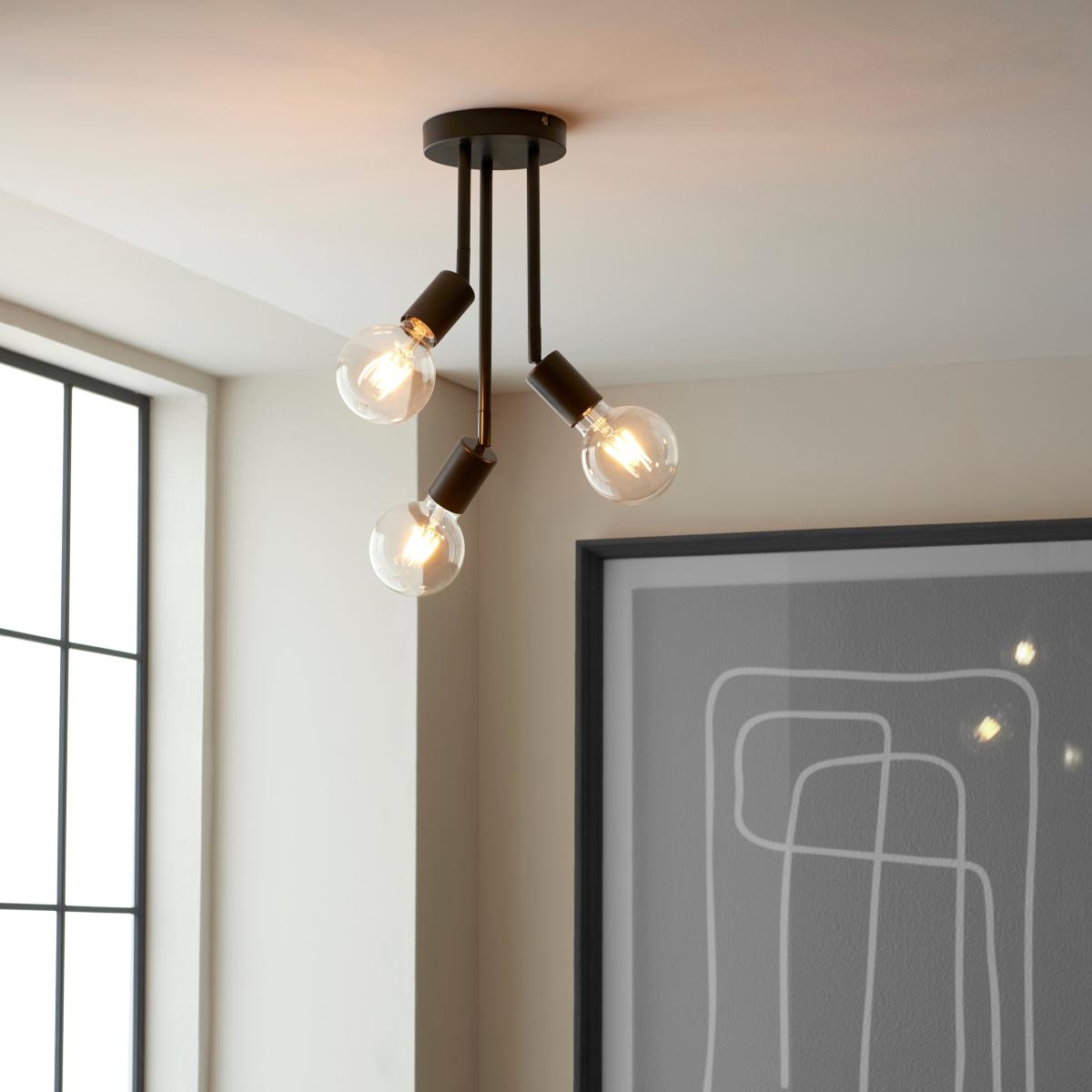 I love this three-light semi-flush because of its sleek, minimal design that easily complements both modern and industrial interiors. It’s versatile enough to work in living rooms, bedrooms, or hallways, especially where ceiling height is limited. For styling tips, consider pairing it with simple, understated decor to let the fixture stand out, or combine it with other black metal accents for a cohesive look. Practicality-wise, it provides good ambient lighting without cluttering your ceiling space, making it great for creating a contemporary feel in smaller or more pared-back rooms.