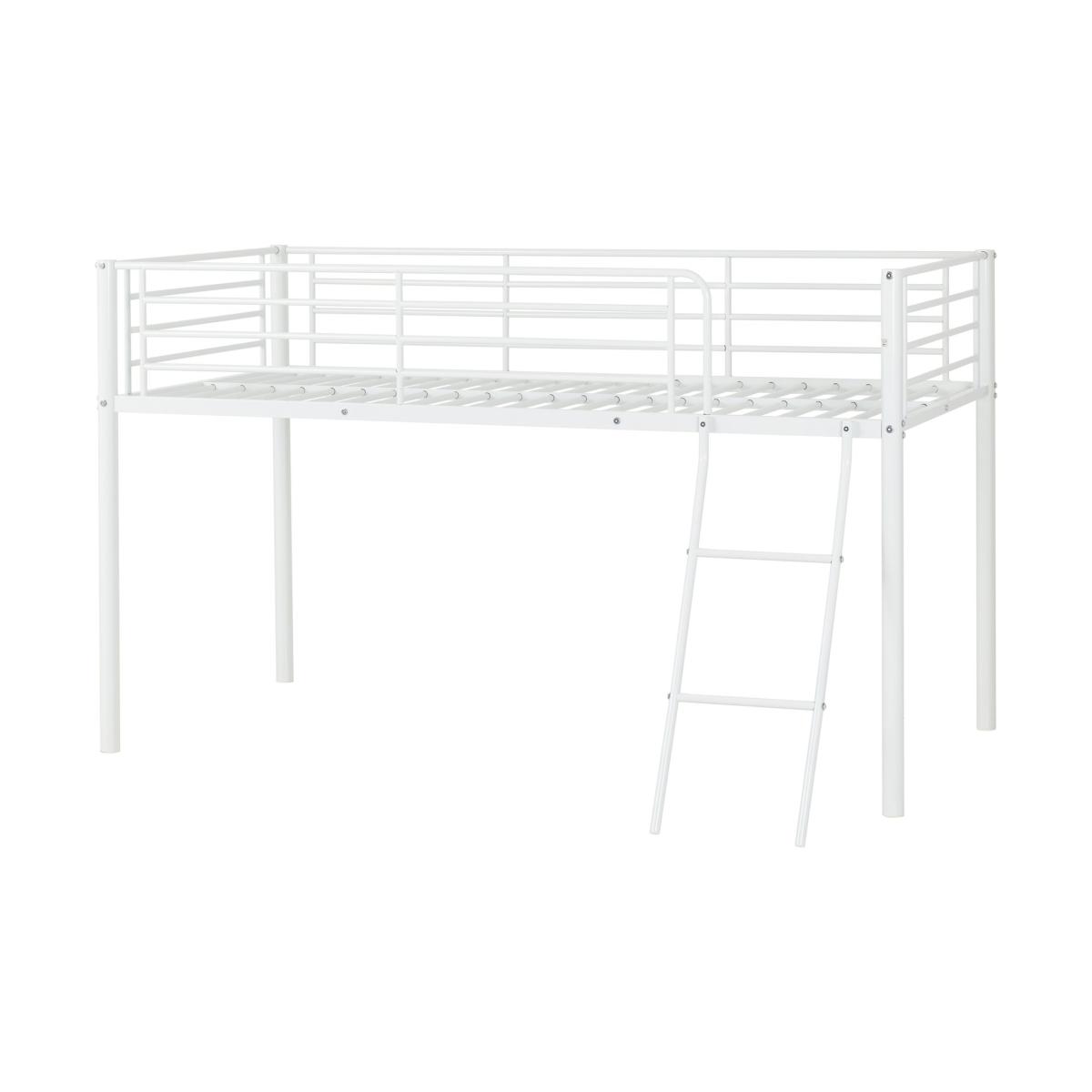 I’m a fan of this white metal midsleeper for its clean, restrained profile and sturdy build. It works equally well in a minimalist teen bedroom, a Scandi-inspired guest room or a compact urban studio where you need to maximise floor space. Keep the look fresh by pairing it with pale bedding and pops of pastel or muted jewel tones, then add a slim chest of drawers or colourful storage baskets underneath. A strip LED light or small floating shelf along the guard rail makes it both practical and cosy without cluttering the room.